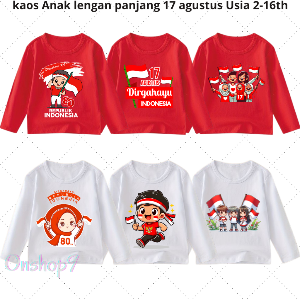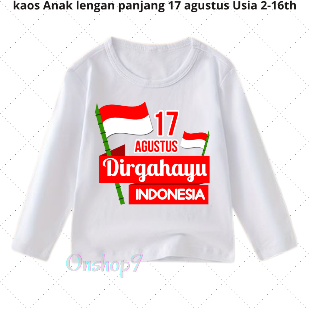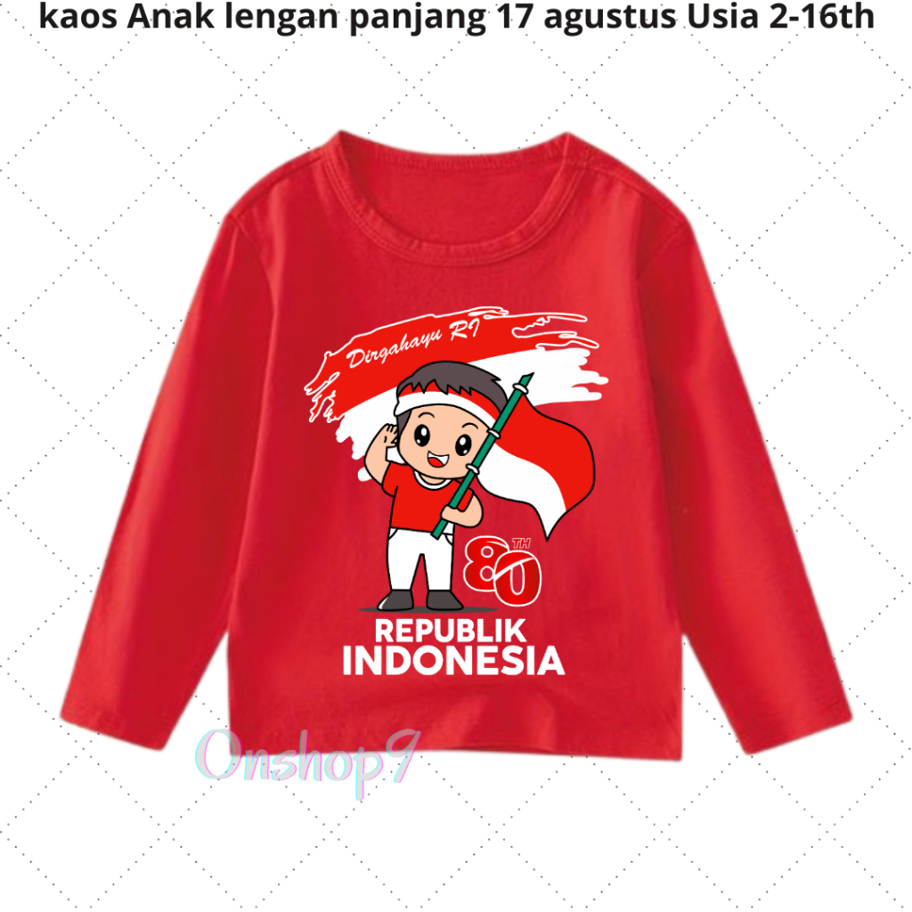 Kaos anak Laki Laki Perempuan 17 Agustusan Kemerdekaan Unisex anak Lengan Panjang Usia 2-16 th