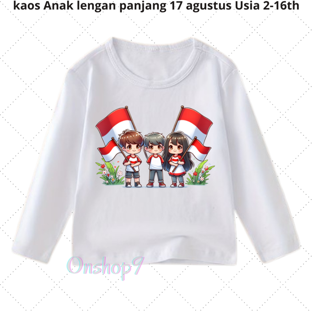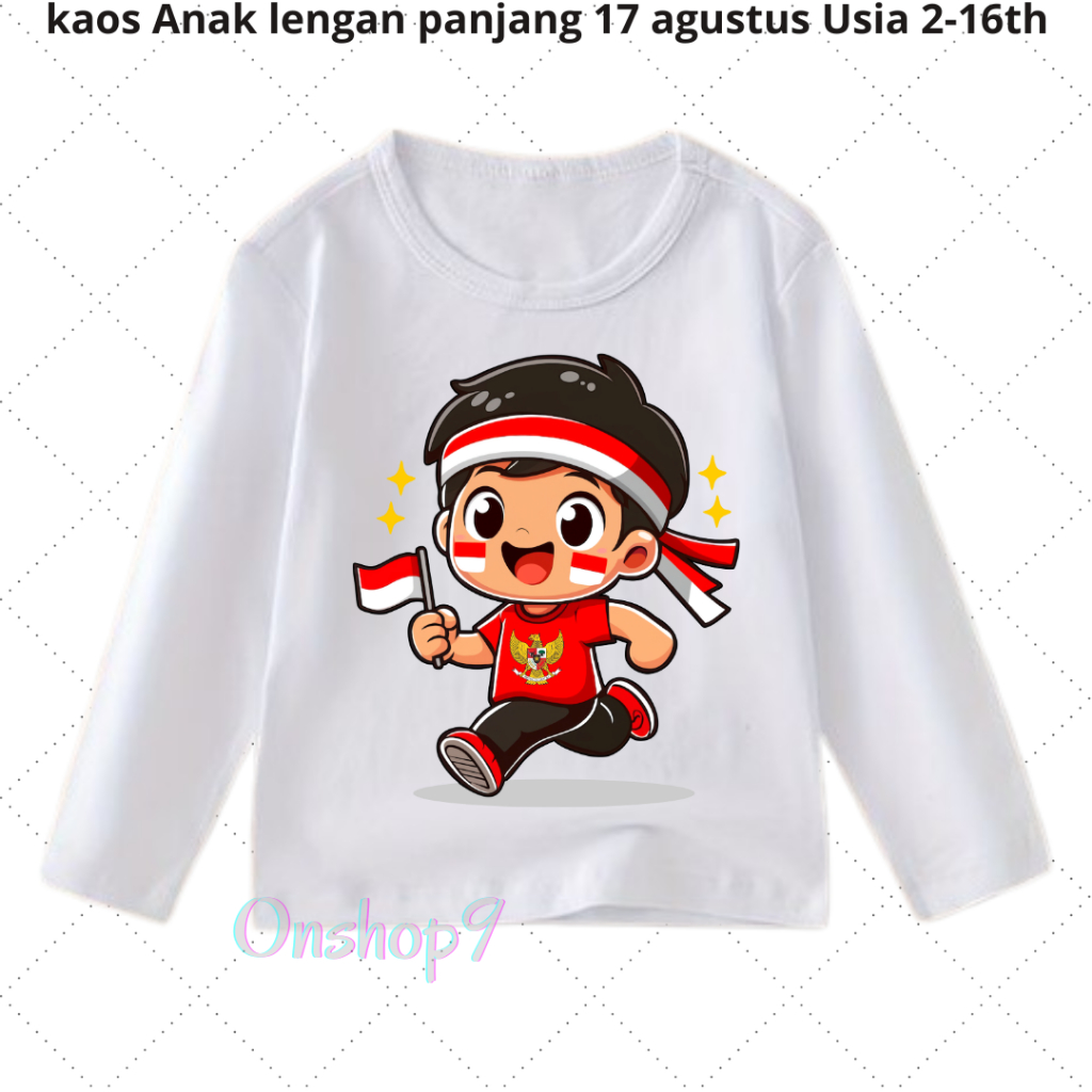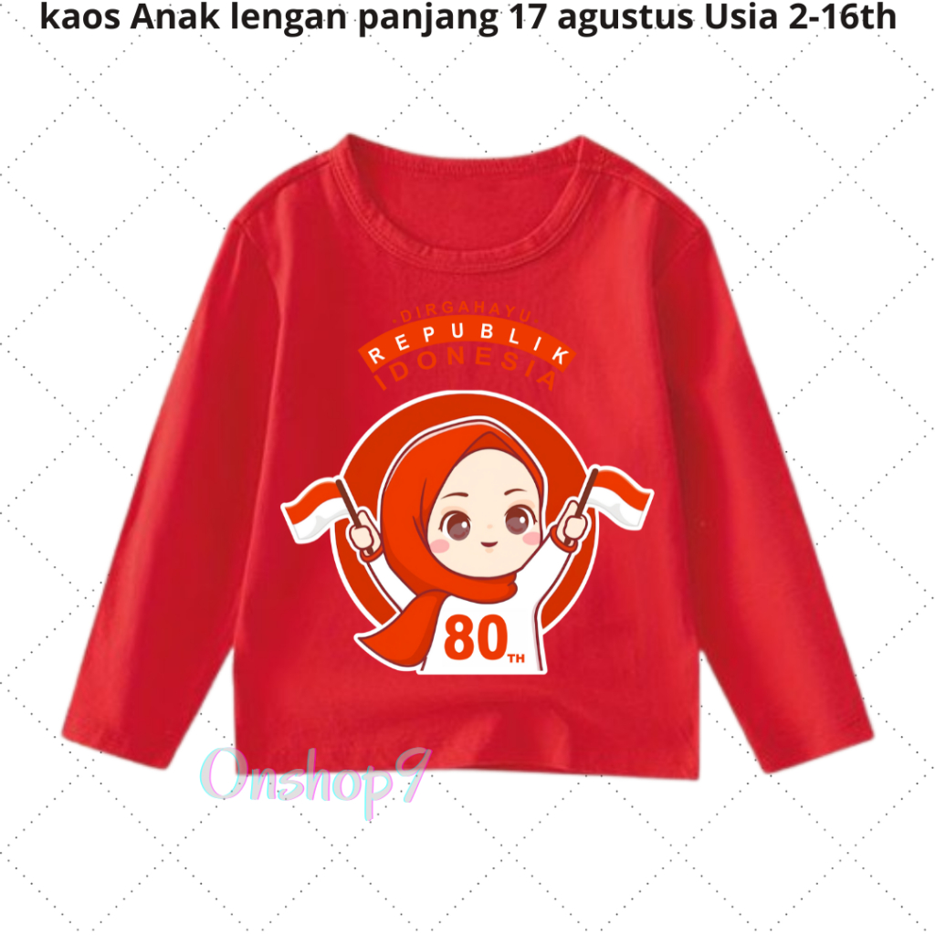 Kaos anak Laki Laki Perempuan 17 Agustusan Kemerdekaan Unisex anak Lengan Panjang Usia 2-16 th