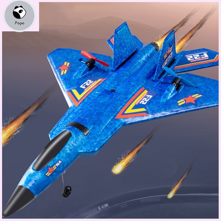 MAINAN RC PESAWAT TEMPUR JET F22 BATERAI CAS REMOTE CONTROL 2.4GHZ LED PESAWAT GLIDER AIRPLANE FOAM BATTLE JET