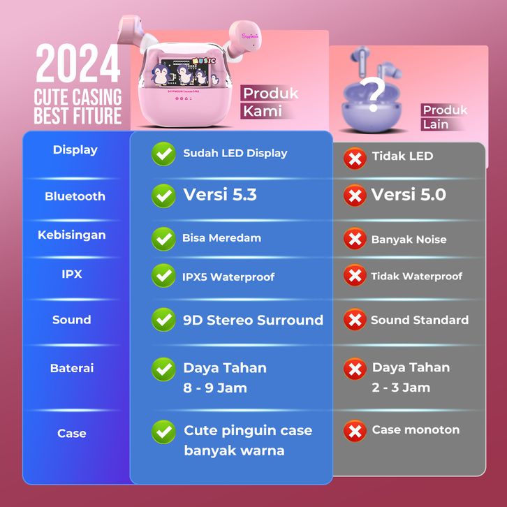 TWS Bluetooth Original (2024 Baru) Jovitech TWS Earphone Bluetooth 5.3 Karakter Lucu Skypinguin In-Ear Digital Display H