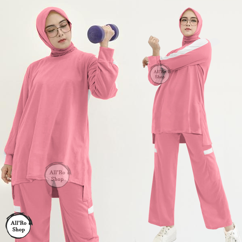 Set Nara - Setelan Olahraga Wanita Muslim Hijab Syari Sopan OneSet Baju dan Celana Senam Model Tunik Lengan dan Celana Panjang