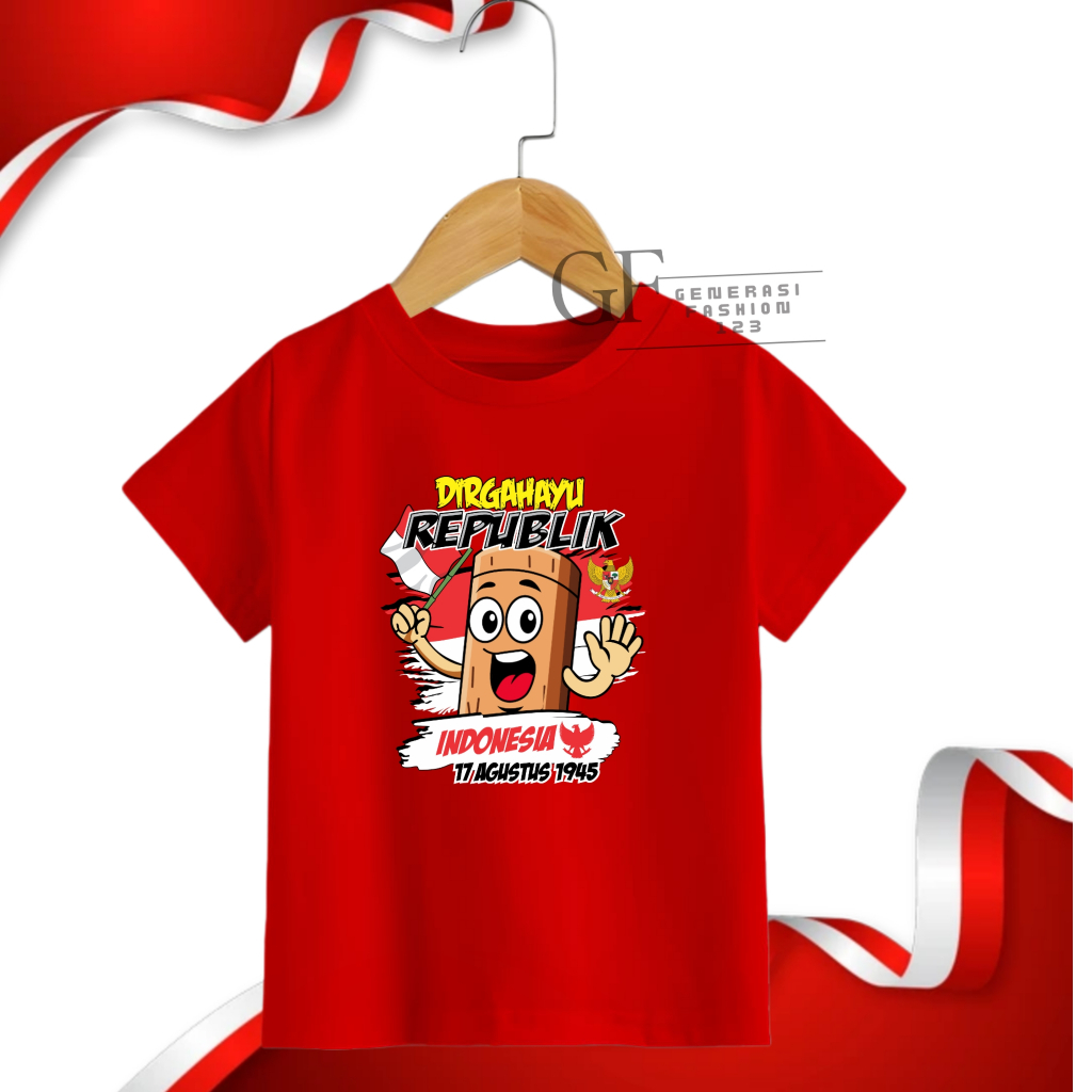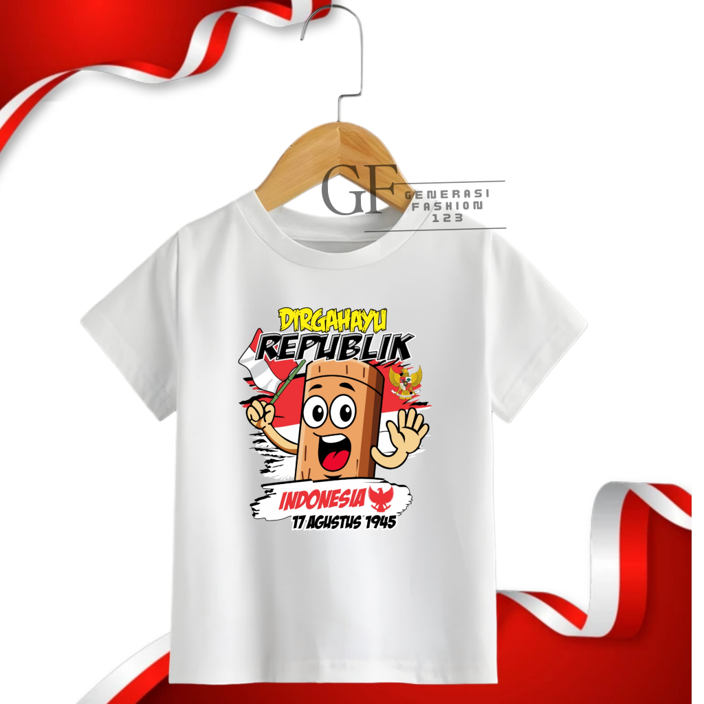 GF123/ Kaos kemerdekaan indonesia 17 Agustus motif Tung Tung Sahur ukuran Dewasa n Anak cowok cewek