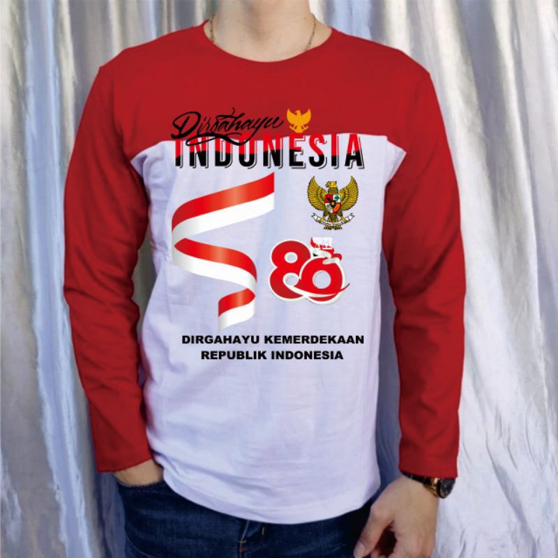 KAOS KATUN 28S/kaos merah putih lengan panjang 17 Agustus HUT RI 17 Agustus Indonesia Garuda 80 th merdeka