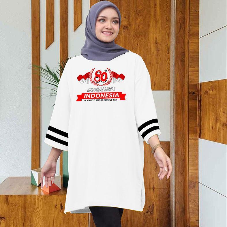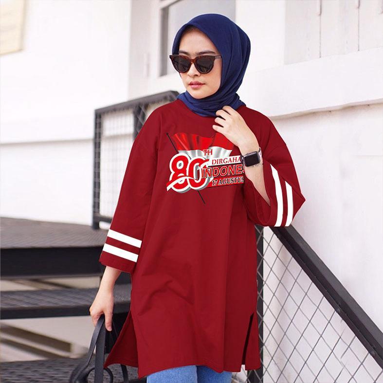 Atasan Oversize 17 Agustus Bahan Babyterry Lengan Garis 2/ Koas Wanita LD 130cm