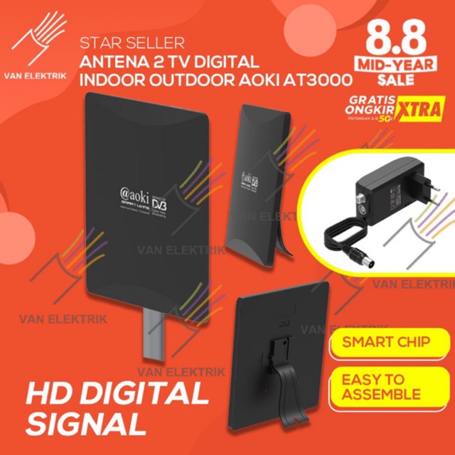 ANTENA 2 TV DIGITAL LUAR DALAM INDOOR OUTDOOR AOKI AT3000