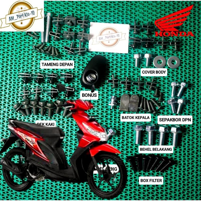 Baut Body Lengkap Honda Beat Karbu Full Set / Baut fullbody Honda Beat Karbu /Baut Beat