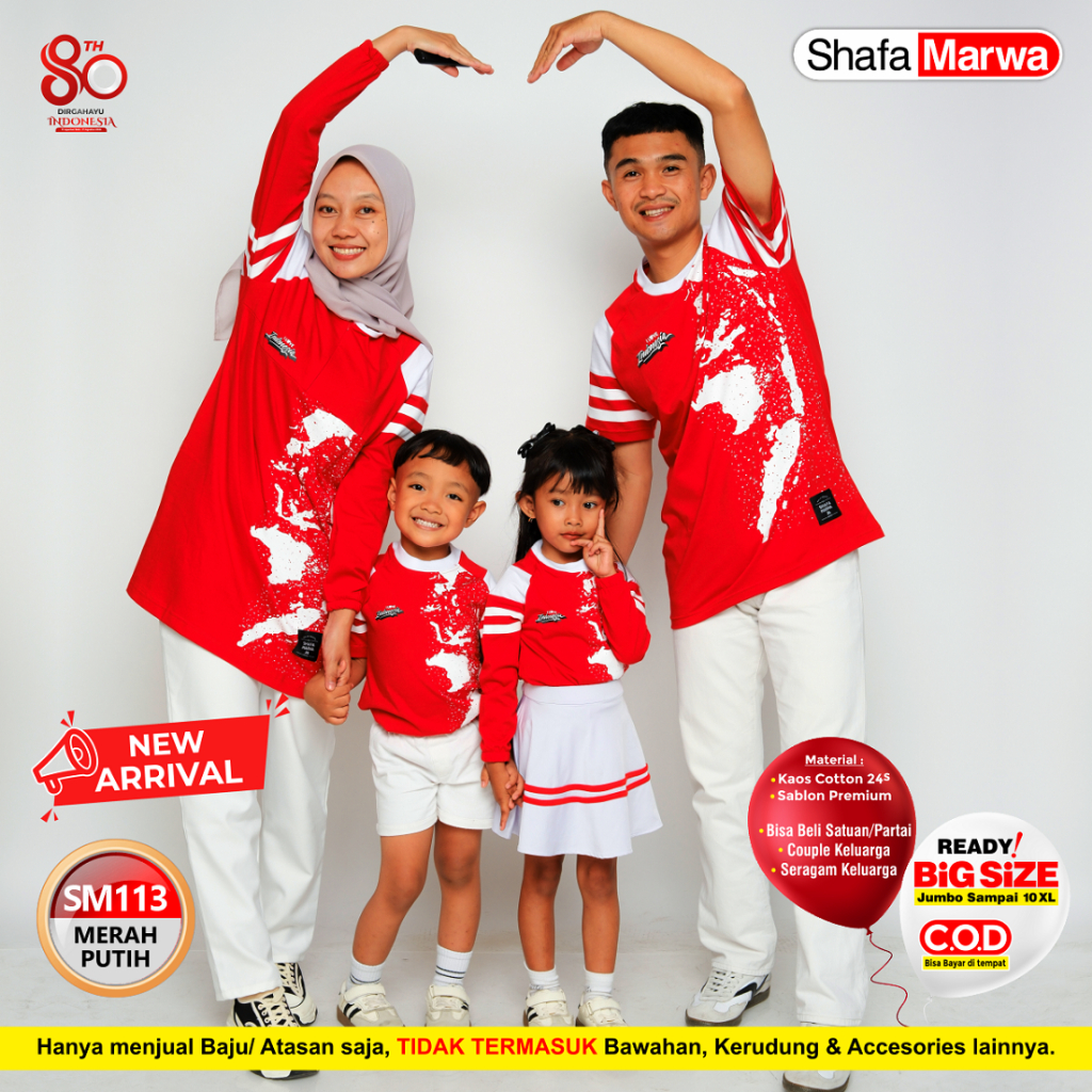 Shafamarwa Kaos Merah Putih Agustusan - Baju Seragam Couple Edisi Kemerdekaan 17 Agustus SM113