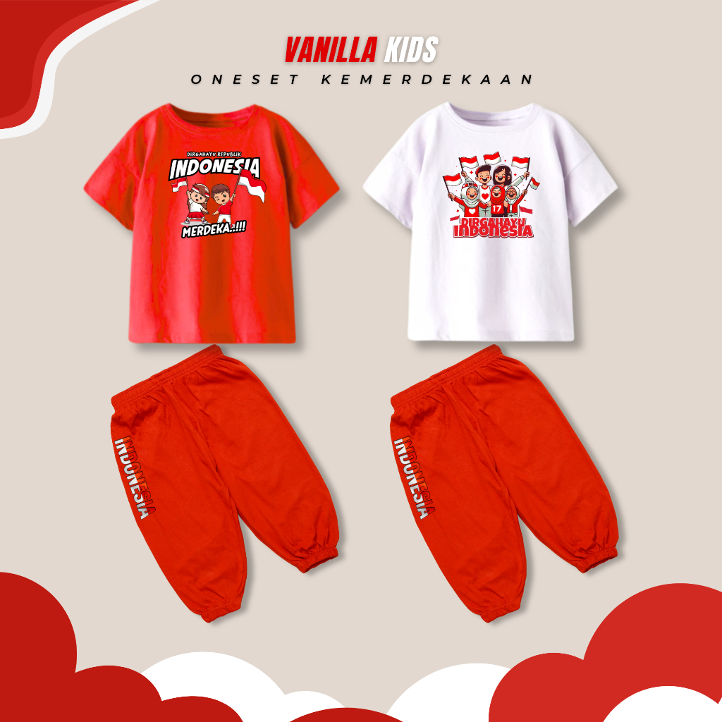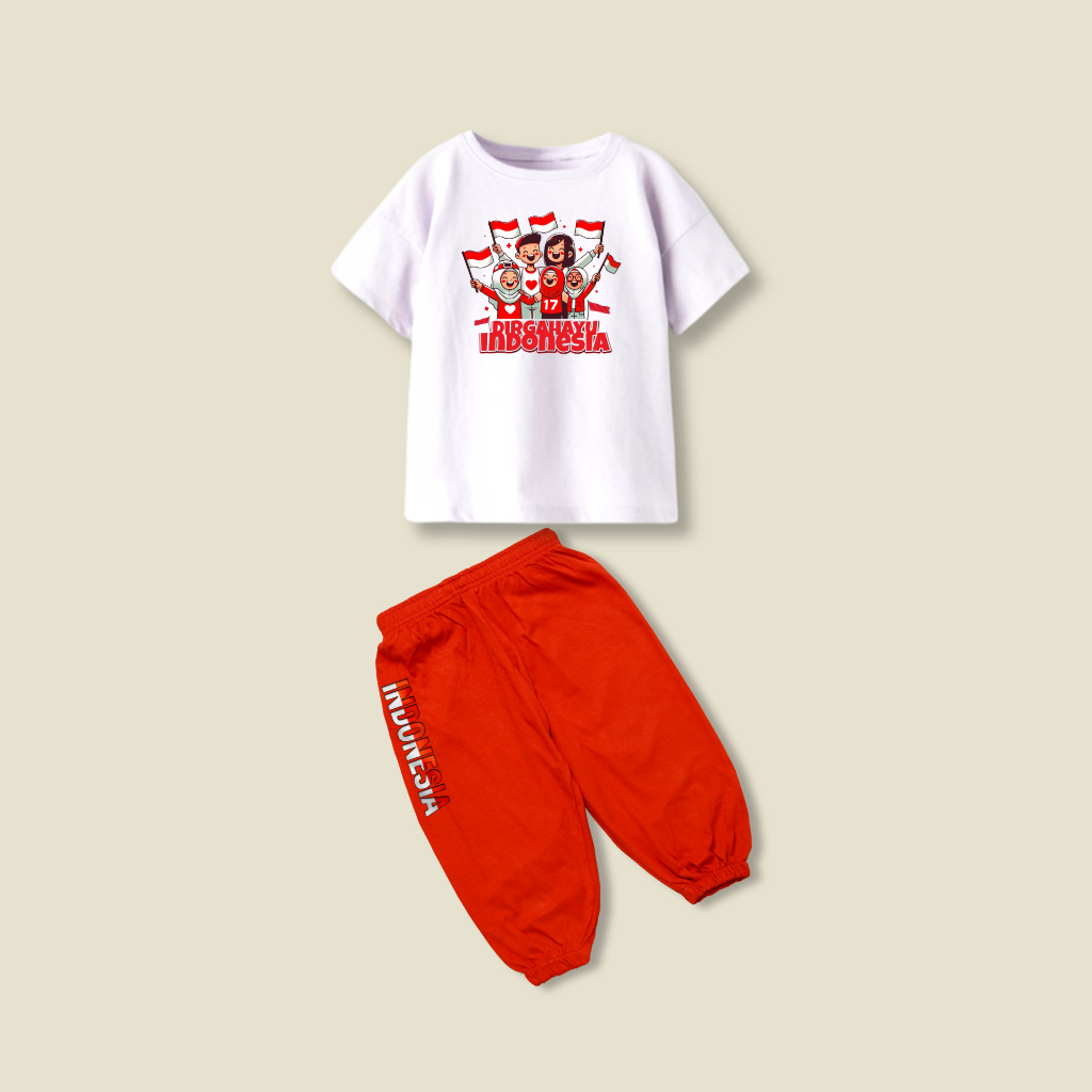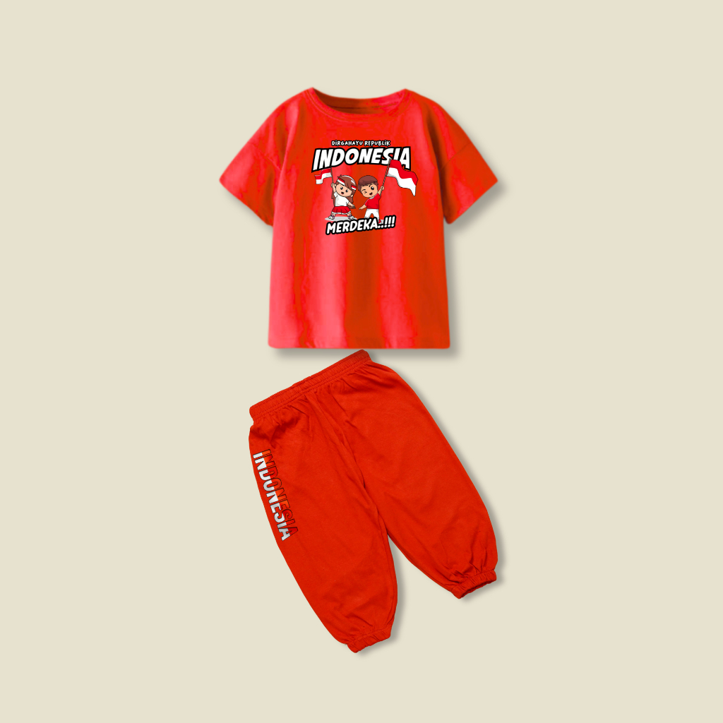 Setelan Baju kemerdekaan anak laki laki dan anak perempuani independence day | One set Merdeka agustusan 2025 | kaos jogger setelan anak HUT merdeka indonesia ke 80