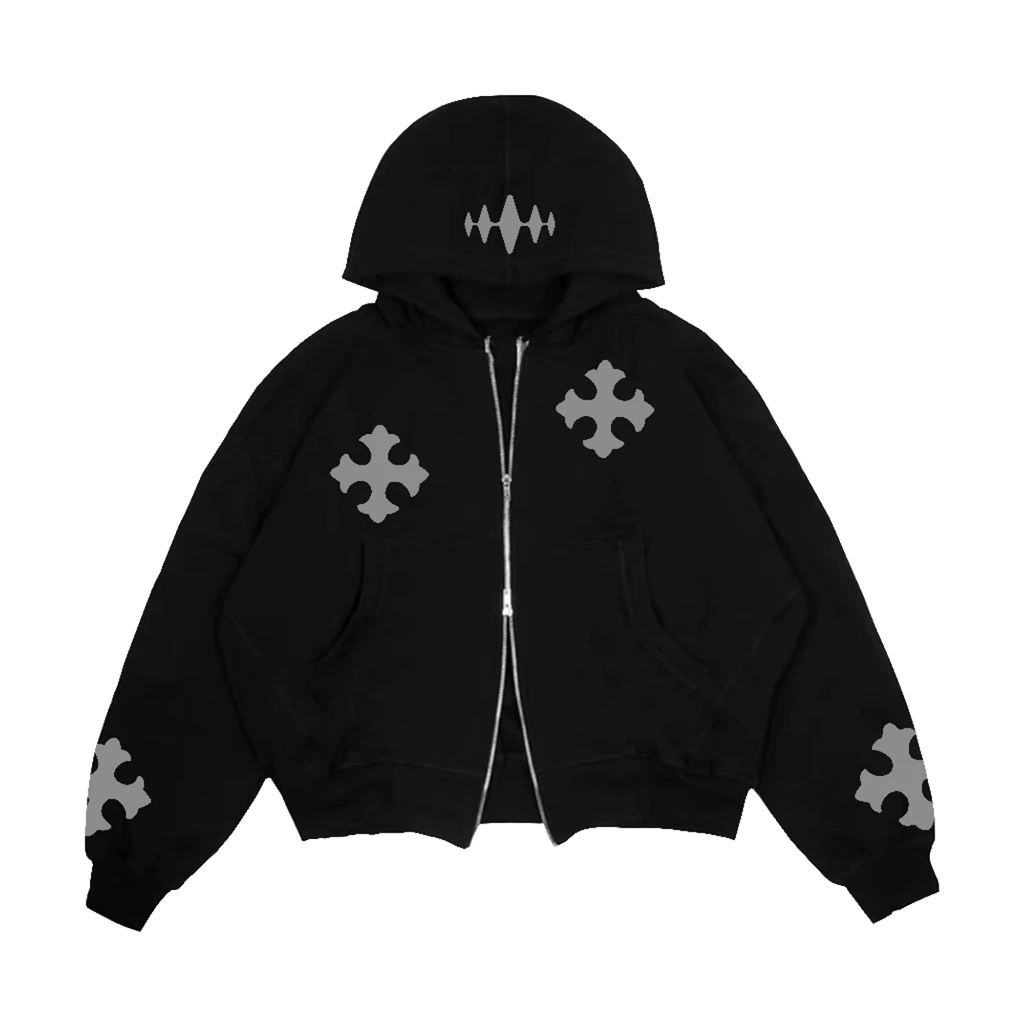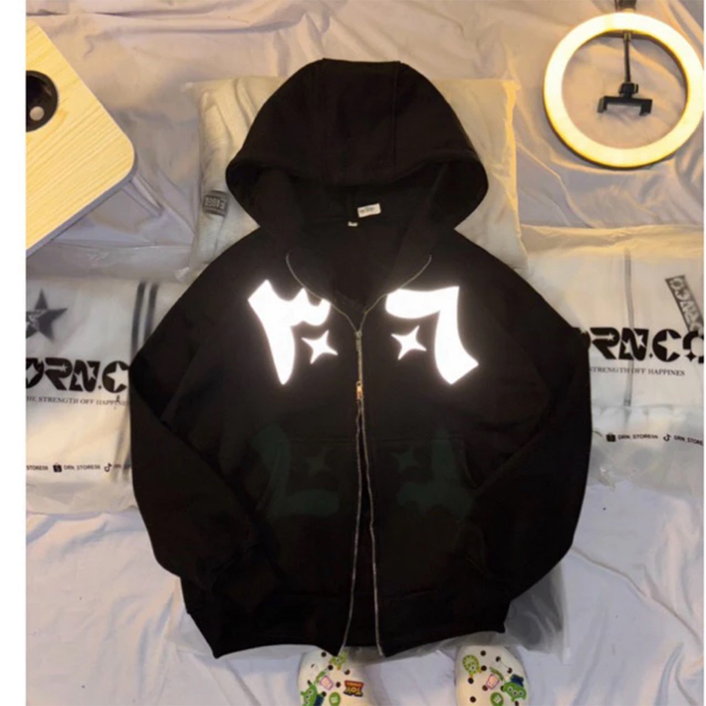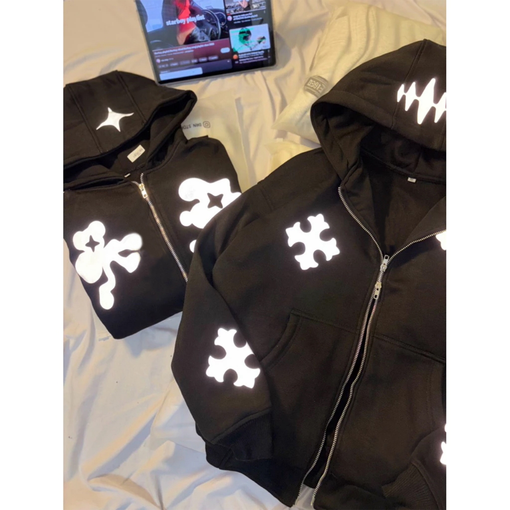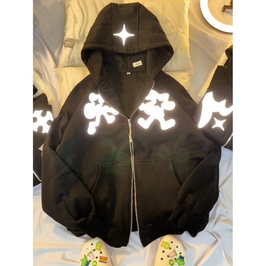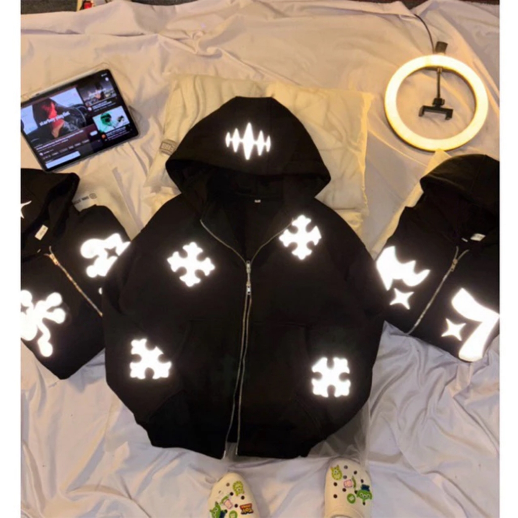SPRSCO - ZIPPER BOXY HOODIE REFLECTIVE MENYALA DOUBLE KEPALA ZIPPER FLEECE 280 GSM UNISEX