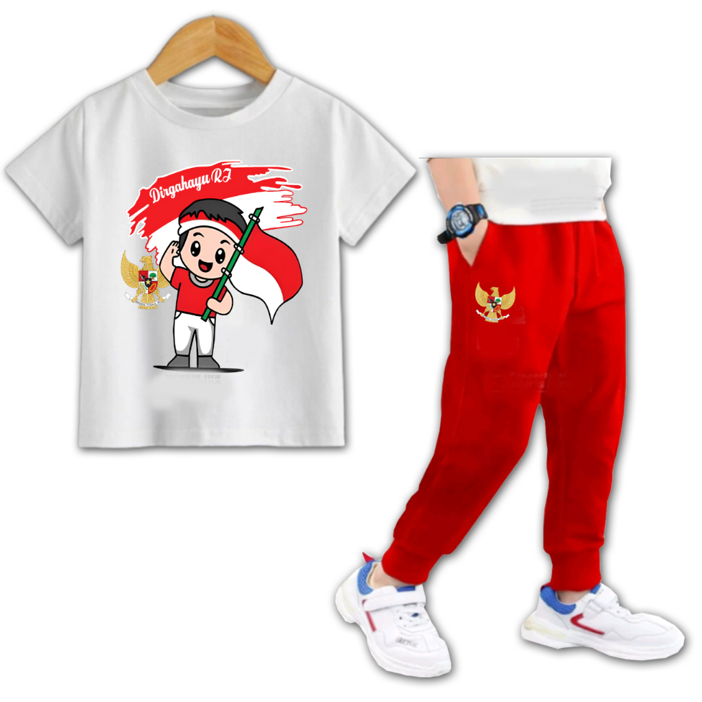 baju setelan Agustusan agustus 2025 hut ri ke 80 anak laki laki perempuan baju tung sahurolahraga training stelan timnas indonesia cewe cowo usia 1 - 10 tahun