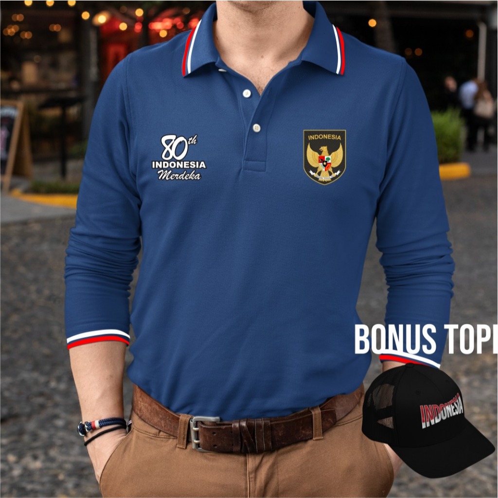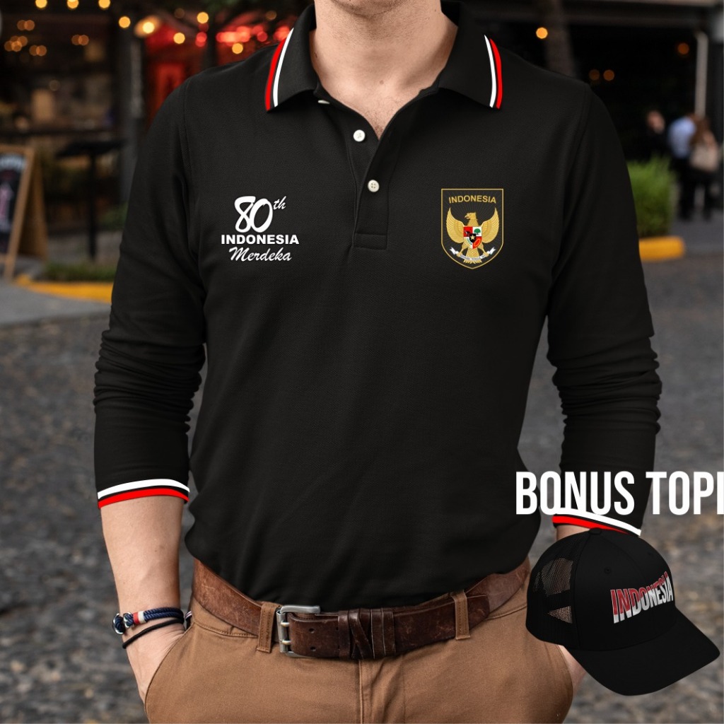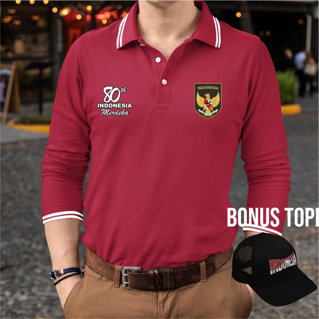 MLS 80 PANJANG BONUS TOPI kaos 17 - BAJU KERAH POLO WANGKI PAKAIAN ATASAN OUTFIT GARUDA KEMERDEKAAN 17 AGUSTUS MERAH PUTIH INDONESIA MERDEKA KEKINIAN