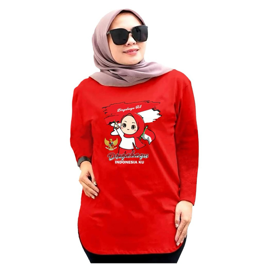 KAOS MERAH 17AN AGUSTUSAN INDONESIA BAJU KAOS GARUDA HUT RI KATUN COMBED T SHIRT WANITA PRIA MURAH