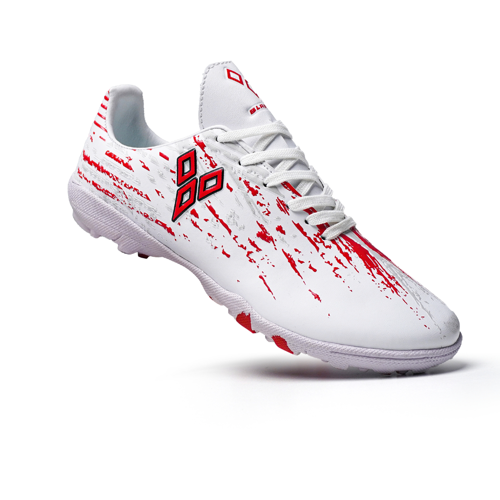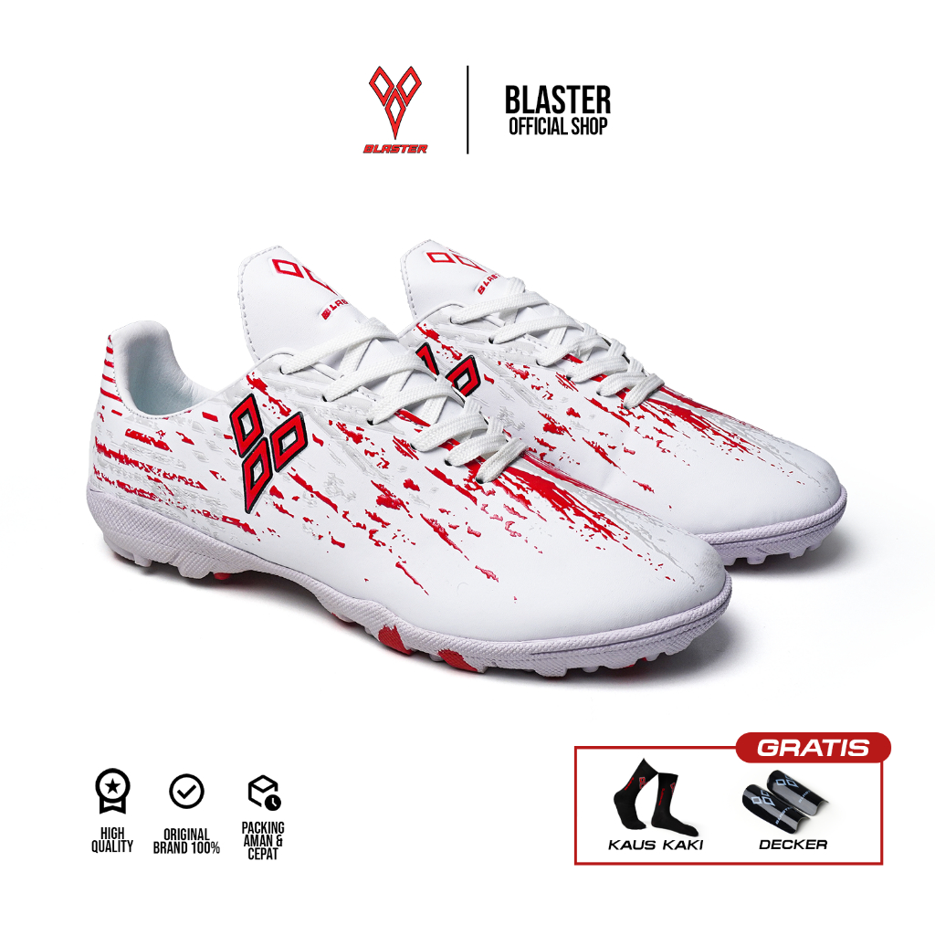 BLASTER - Stride Putih Merah Sepatu Futsal Anak Dewasa Mini Soccer Sol Turf Gerigi Olahraga Outdoor
