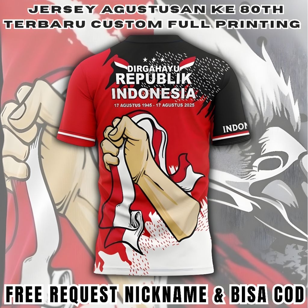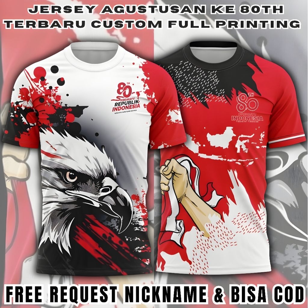 Jersey Kaos Agustusan HUT RI ke 80th Terbaru Full Printing Free Request Nickname