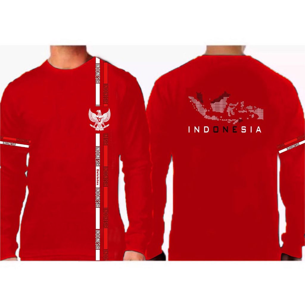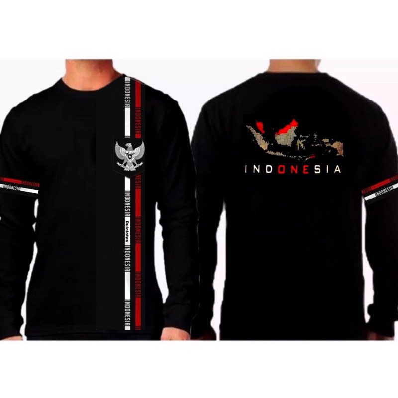 Kaos Indonesia New Lengan Panjang Katun Hitam Premium