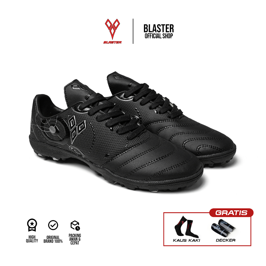 BLASTER - Fusion Hitam Silver Sepatu Futsal Anak Dewasa Olahraga Outdoor Mini Soccer Sol Gerigi