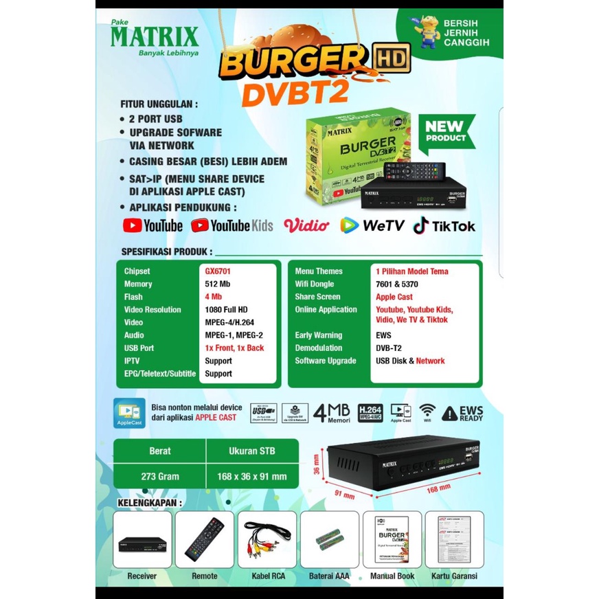 Set Top Box TV Digital Matrix Burger Hijau DVBT2 Matrix Apple Kuning / Set Box TV Digital Matrix Kuning / set box tv digital