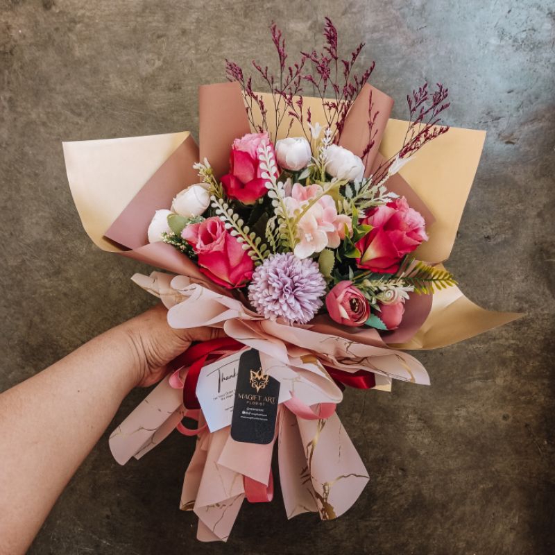 PENGIRIMAN INSTANT - Buket Bunga Korean Style / Buket Bunga Custom Warna / Kado Cewek Murah / Hadiah Untuk Orang Tua / H