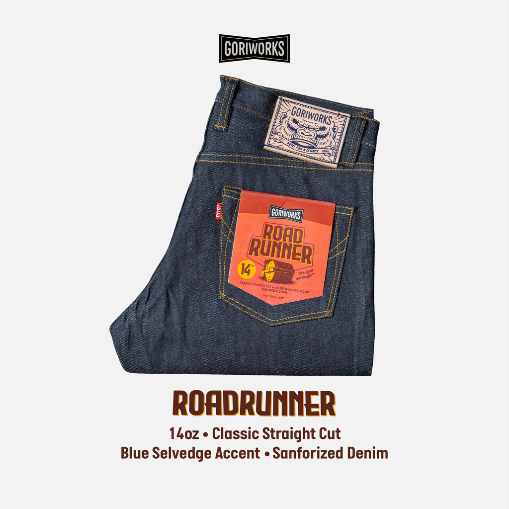 GORI WORKS DENIM - ROADRUNNER 14 OZ // RAW DENIM WITH SELVEDGE ACCENT. NON STRETCH