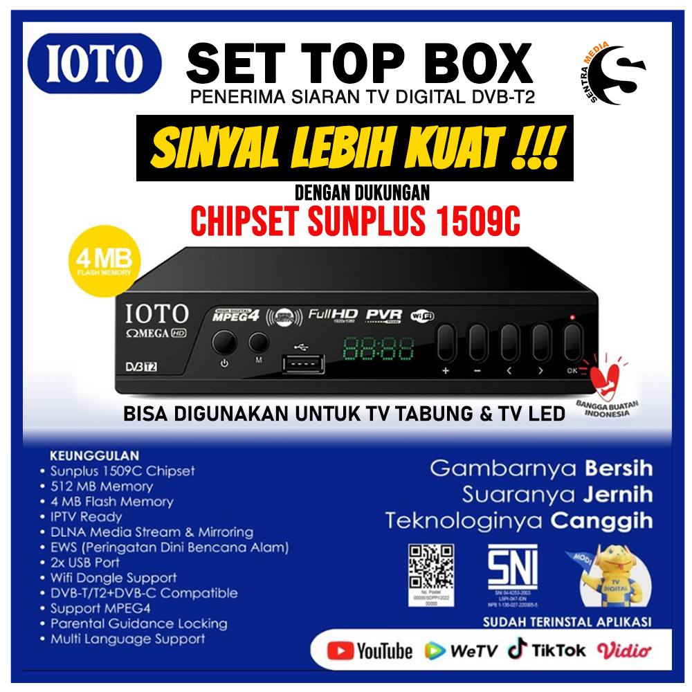 STB IOTO Omega & FREEBOX H1-SE Receiver Siaran Tv Digital Garansi resmi, Bisa Play Youtube