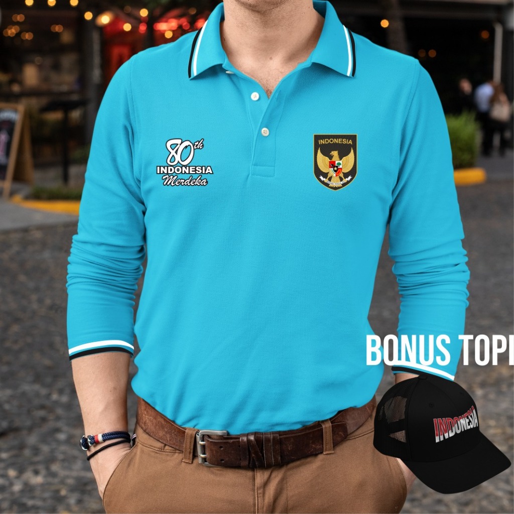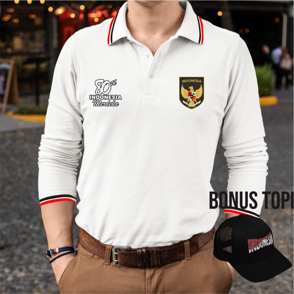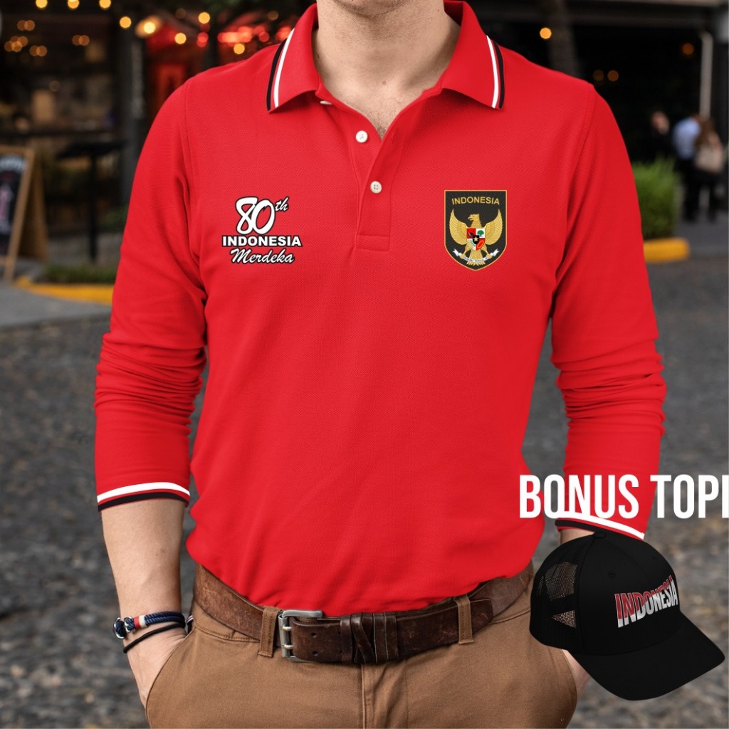 MLS 80 PANJANG BONUS TOPI kaos 17 - BAJU KERAH POLO WANGKI PAKAIAN ATASAN OUTFIT GARUDA KEMERDEKAAN 17 AGUSTUS MERAH PUTIH INDONESIA MERDEKA KEKINIAN