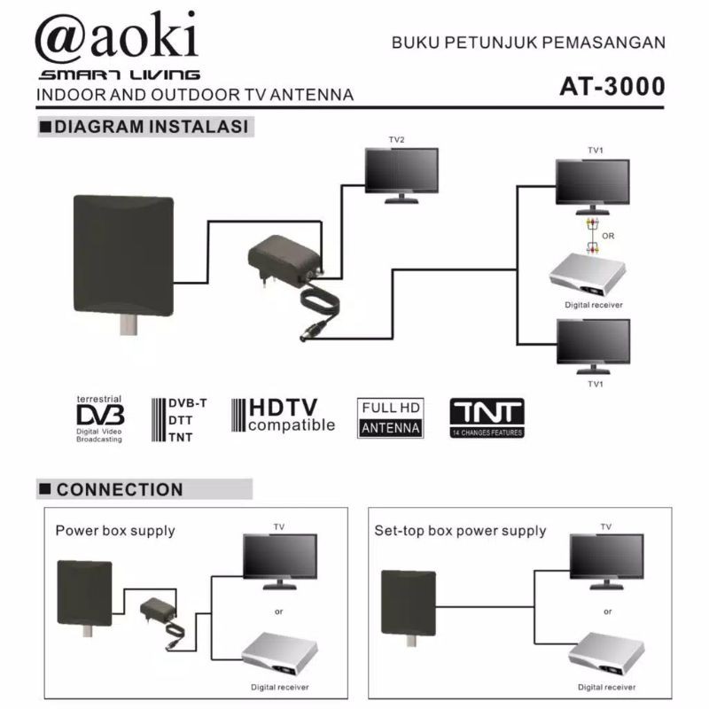 Antena Tv digital Aoki AT-3000 / Antena Tv Outdoor - Indoor / Antena Tv Aoki AT 3000 Digital Luar & Dalam