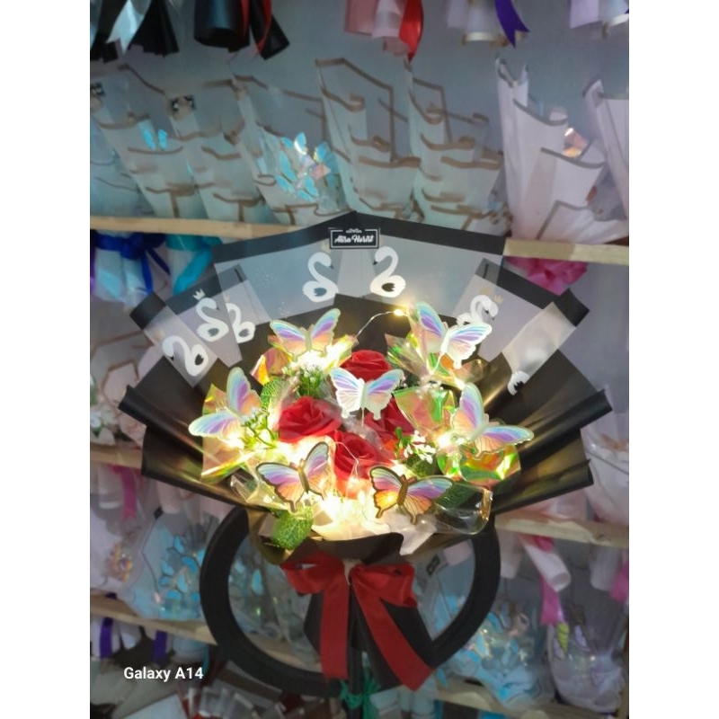 Produk baru buket kupu bunga artifisial +lampu led free kartu ucapan