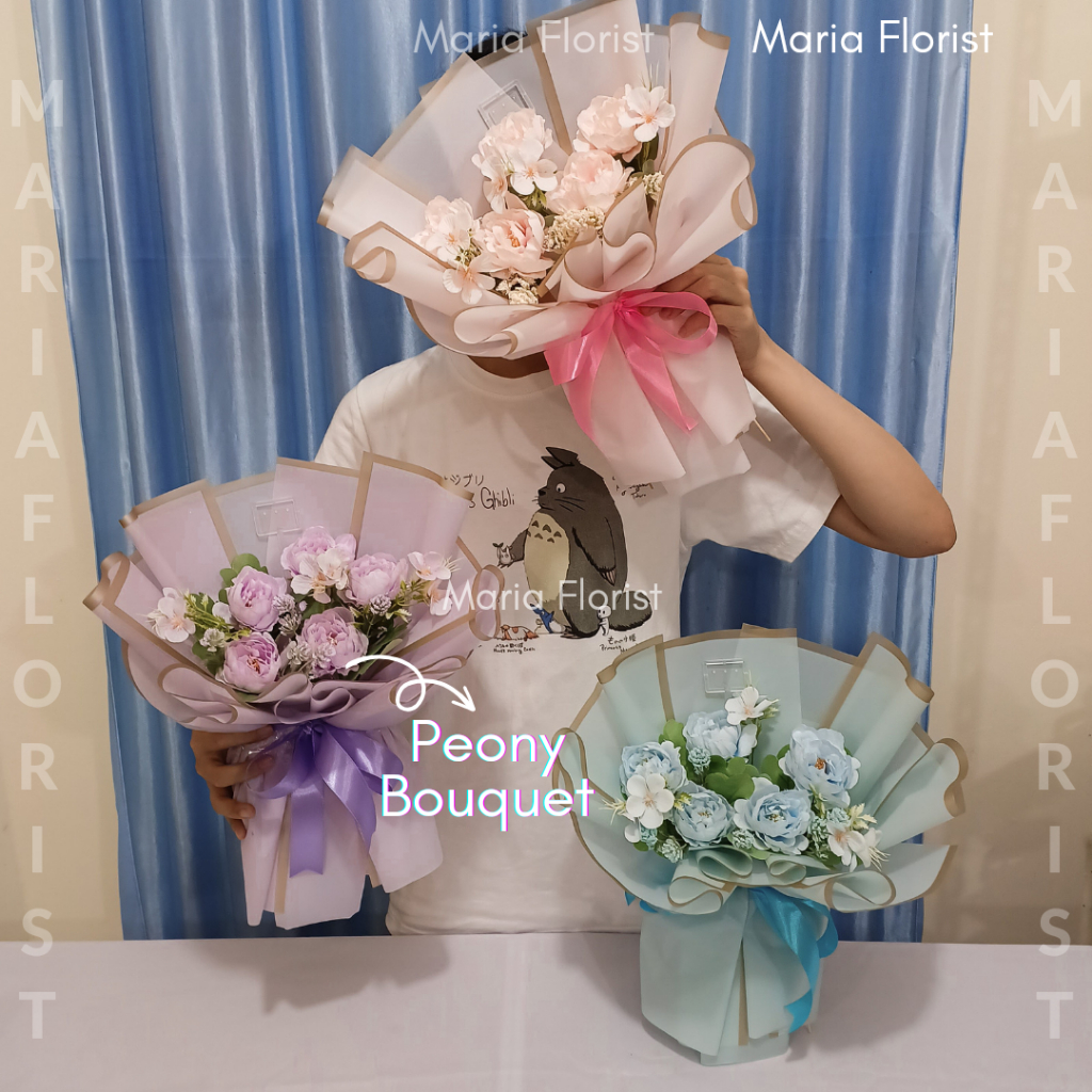 Buket Bunga Artificial Peony - Buket Bunga Wisuda Anniversary Ultah - Buket Sempro Semhas Kompre - Buket Valentine Mini