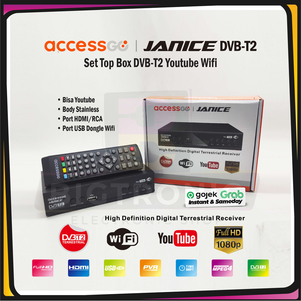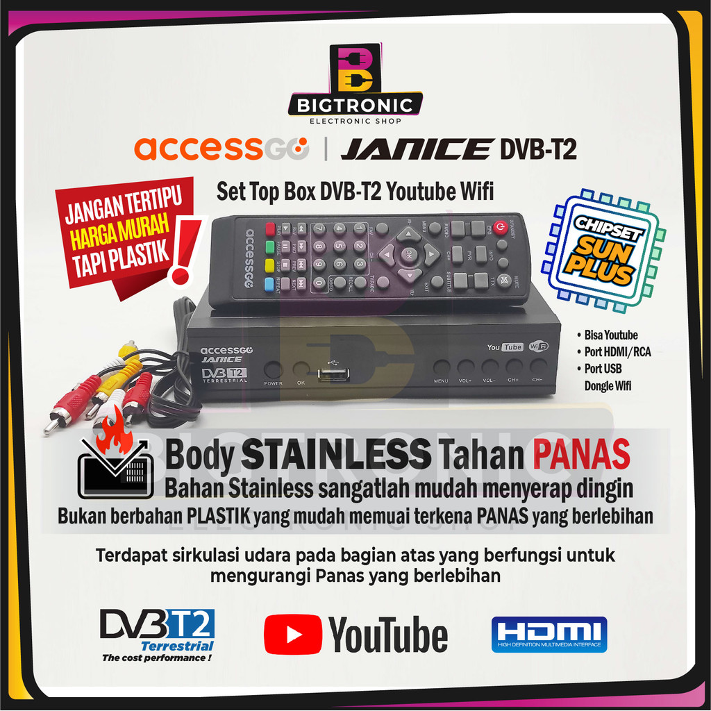 Accessgo STB Set Top Box Janice DVB-T2 Penerima Siaran TV Digital Bisa Youtube ORIGINAL BERGARANSI