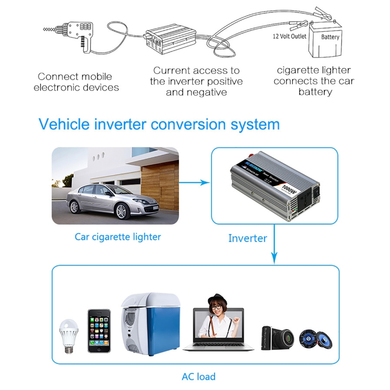 Power Inverter 500 Watt 1000watt 1000w Dc 12v24v Ke Ac 220v Perubah Arus Listrik Dc To Ac Lampu Kipas Angin Charger