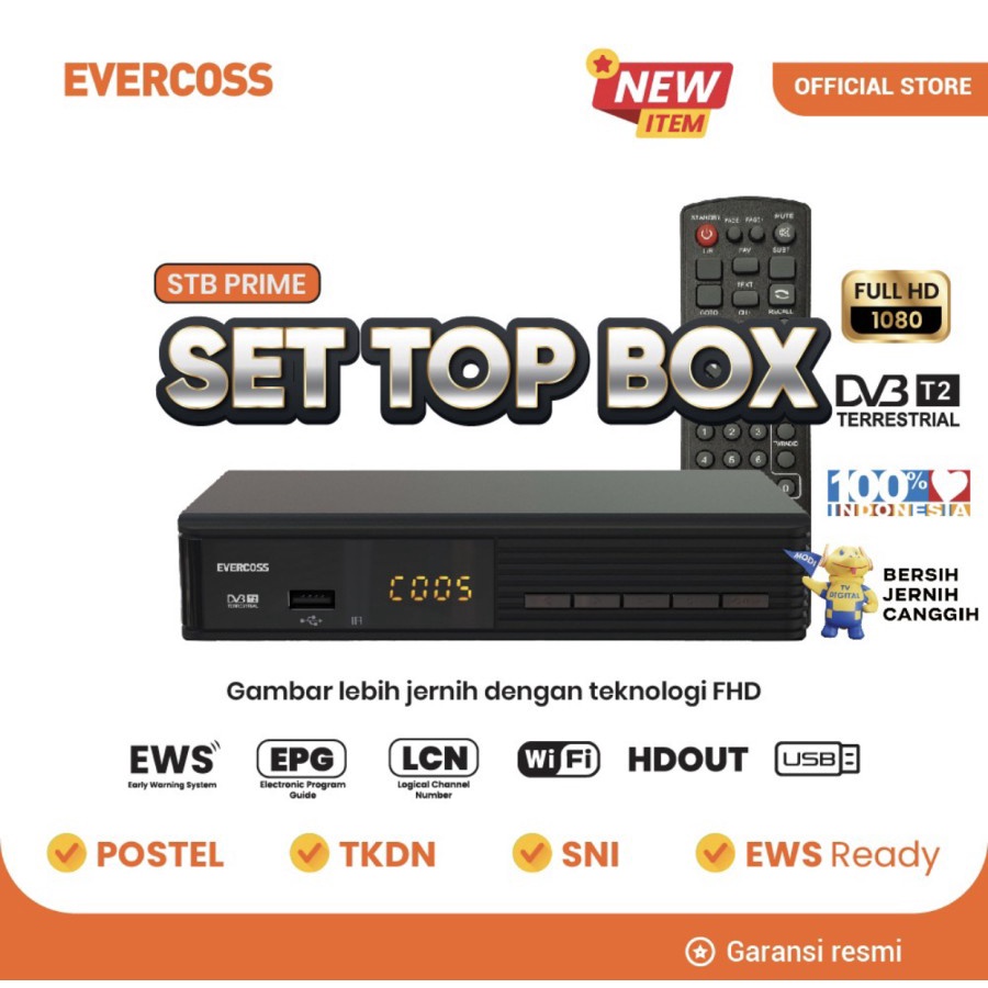 Evercoss MAX / Prime Dus Hitam Set Top Box DVB T2 Receiver TV STB Digital Full HD