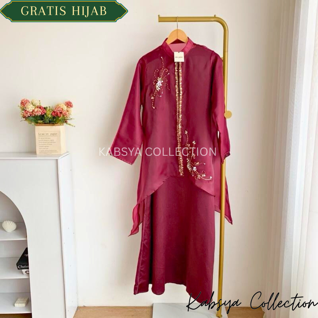 Gamis Yara Organza Payet + Inner Velvet / Set Dress Gamis Modern Elegan Wanita Muslim Modern Terbaru