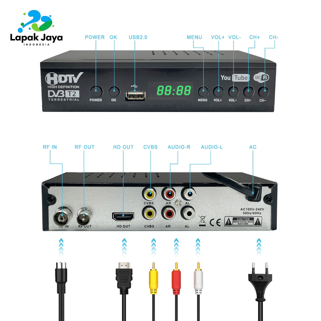 Set Top TV Box HD Digital DTV T2 Kabel HDMI / Dongle WiFi Set Top Box / STB Digital Lengkap Receiver Penerima Siaran Full HD