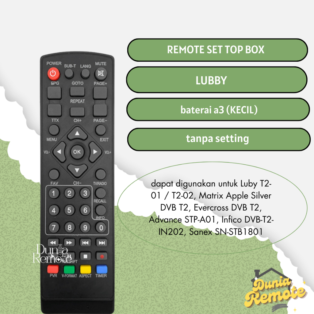 remot Remote Set Top BOX Dvb T2 Advance Hinomaru Sanex Welhome Lubby tanpa setting