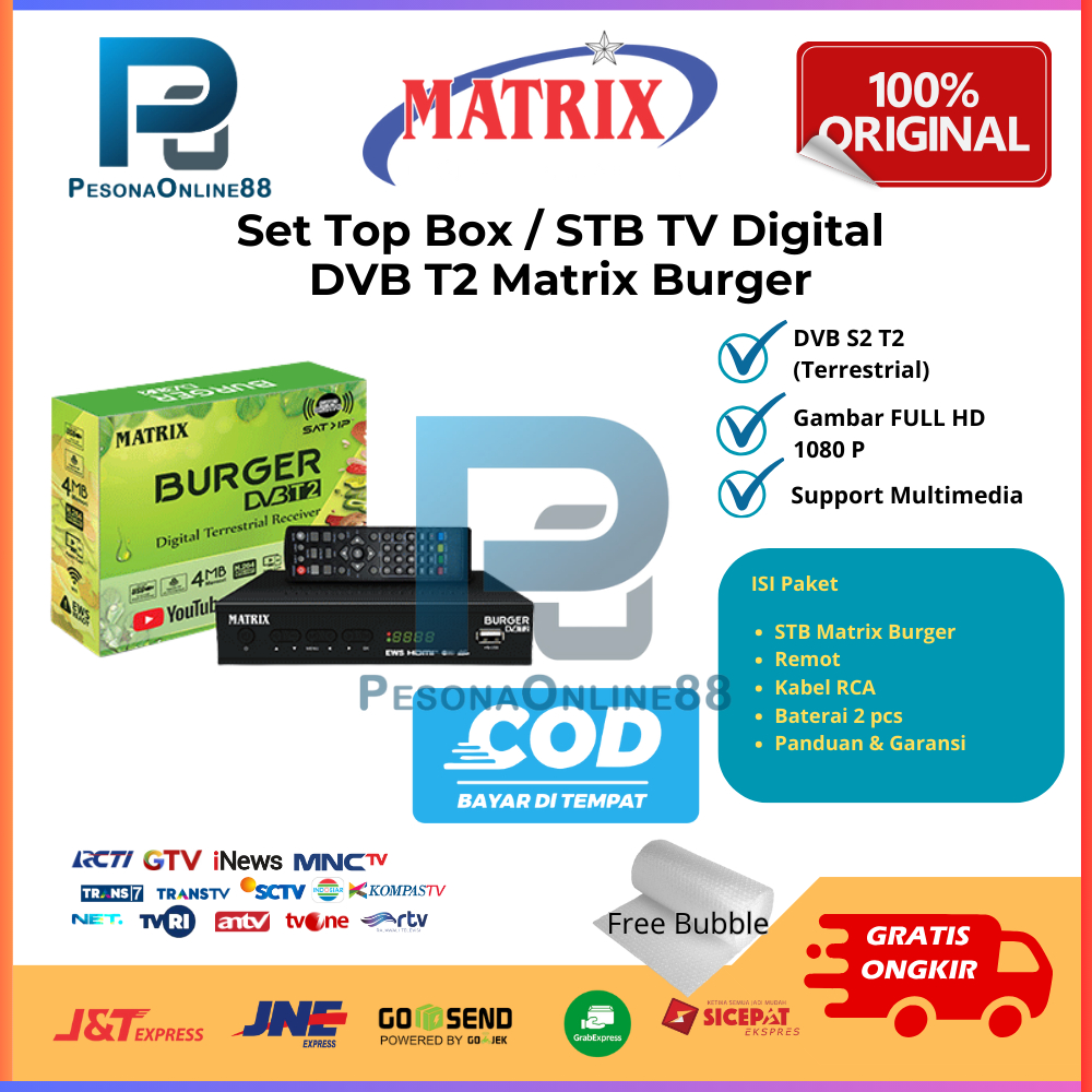 STB / Set Top Box TV Digital DVBT2 Matrix Burger / Matrix Apple Merah / Super HD Kijang / Evinix H1
