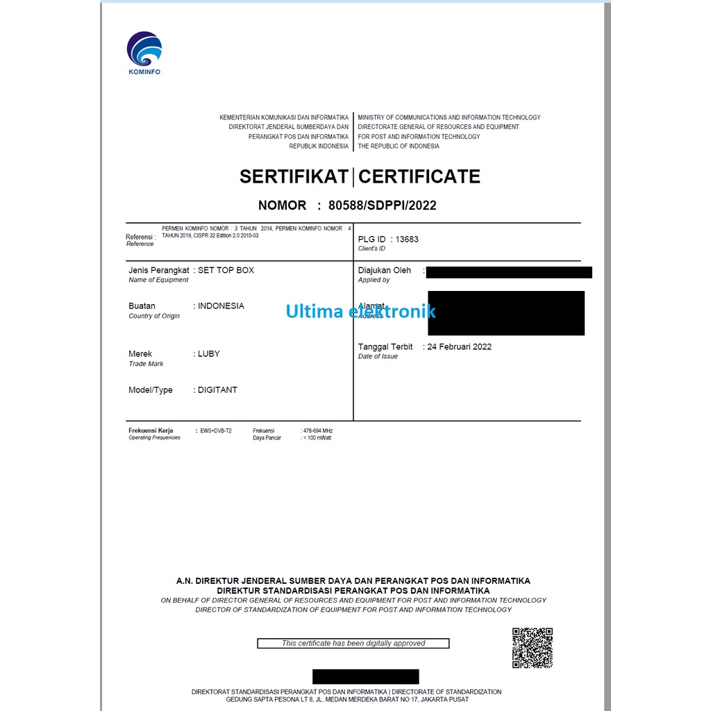 Luby Set top box DVB T2 Terestrial Siaran digital berizin SNI & Postel
