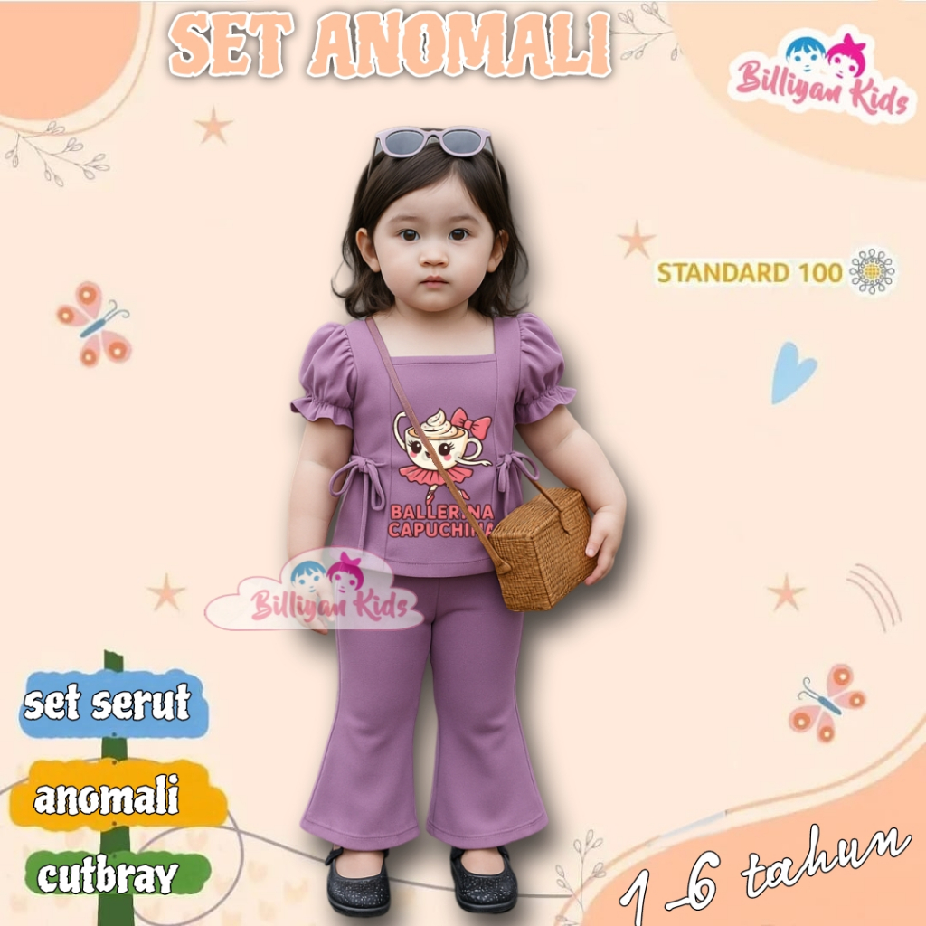 SETELAN ANAK PEREMPUAN ANOMALI TUNG TUNG SAHUR BELLERINA SET BAJU ANAK PEREMPUAN SERUT CUTBRAY