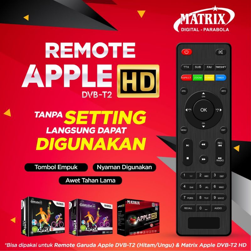 Remot Receiver DVB T2 Matrix Apple HD Merah Tanpa Setting