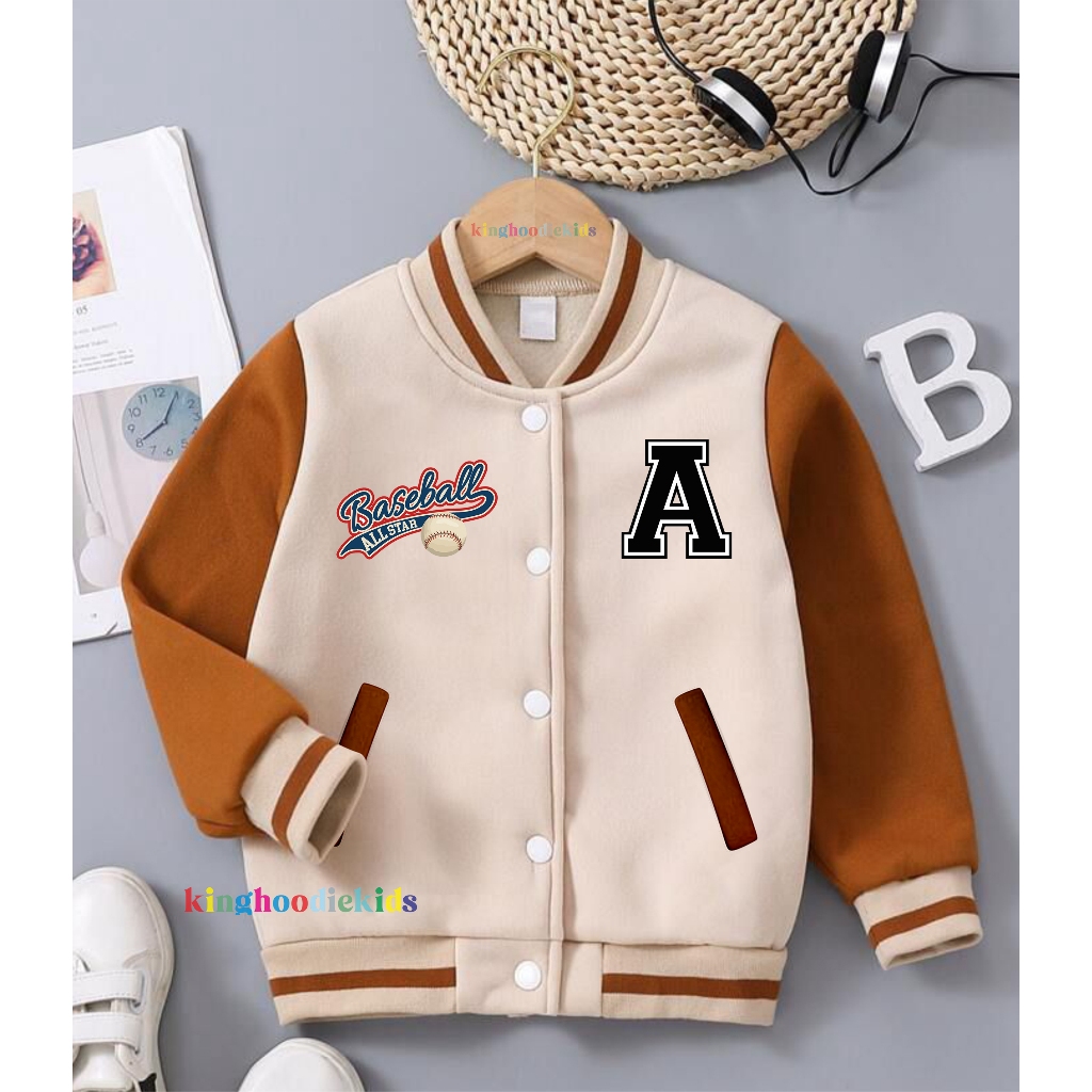 Jaket Varsity Anak Perempuan Laki Laki Inisial A Umur 2 3 4 5 6 7 8 9 10 11 12 Tahun Jaket Baseball Anak Cewe Cowo/Hoodie Swaeter Anak Laki LAki Inisial A