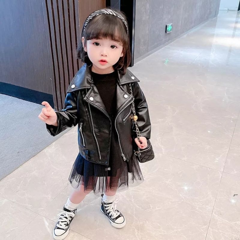 jaket kulit sintetis anak terlaris unisex (cewe/cowo) style hitam keren dan lucu/ jaket kulit anak termurah dan terlaris