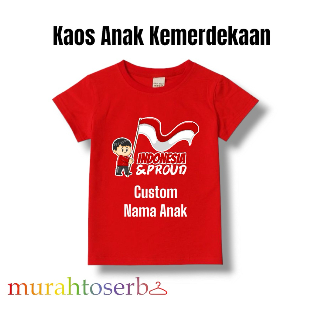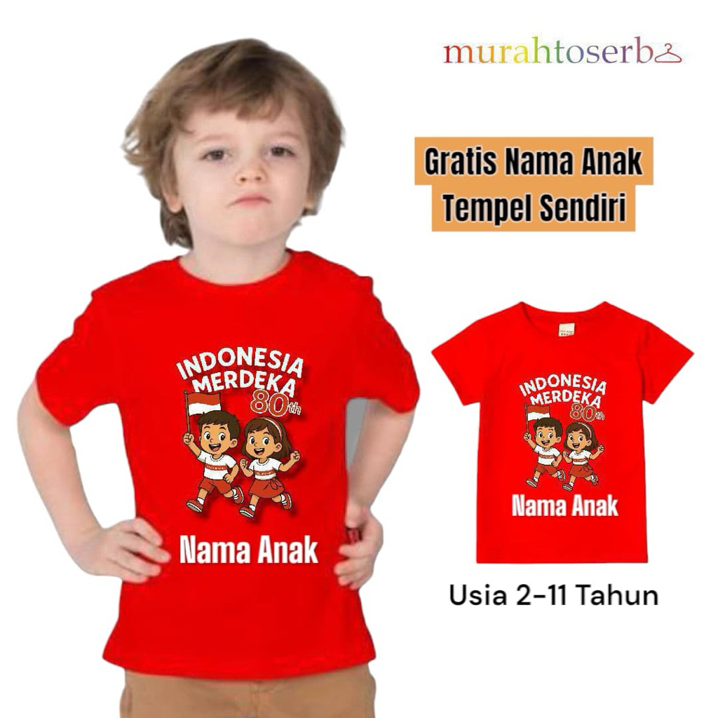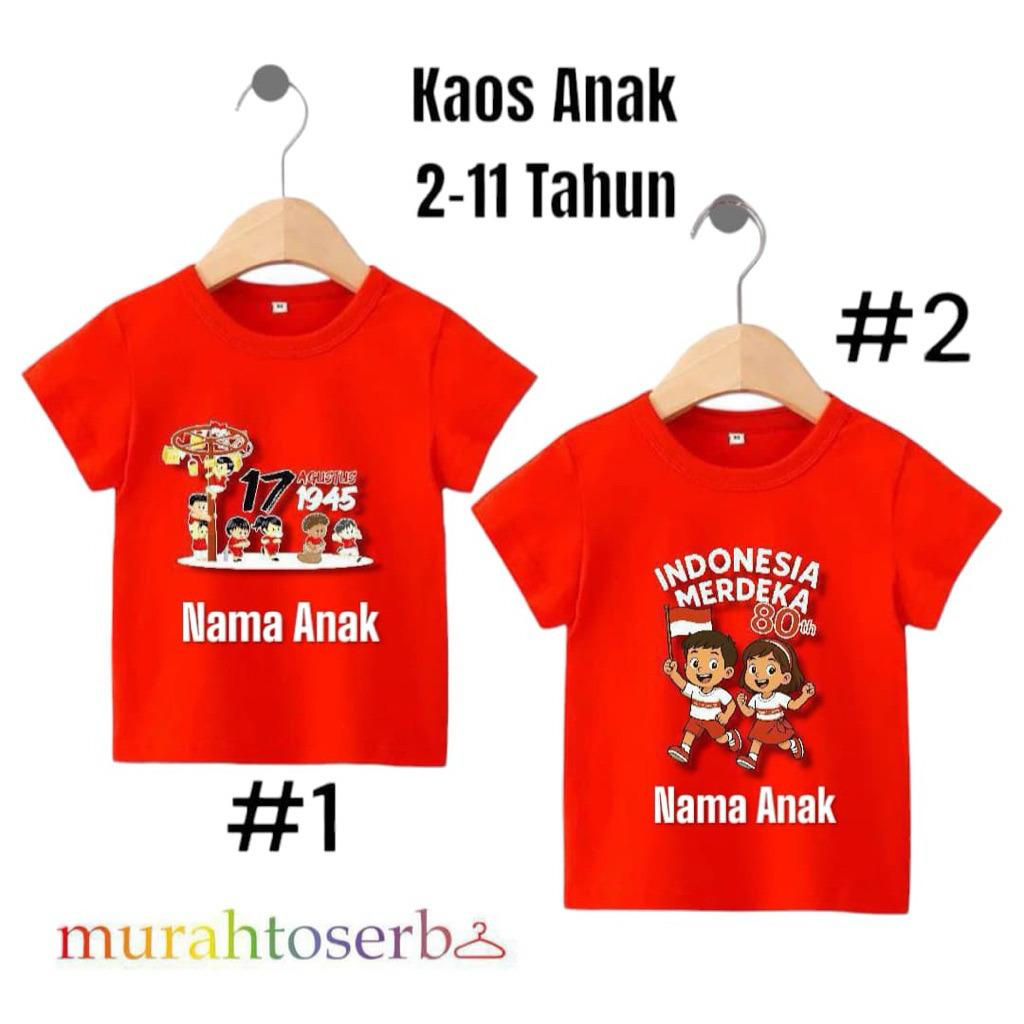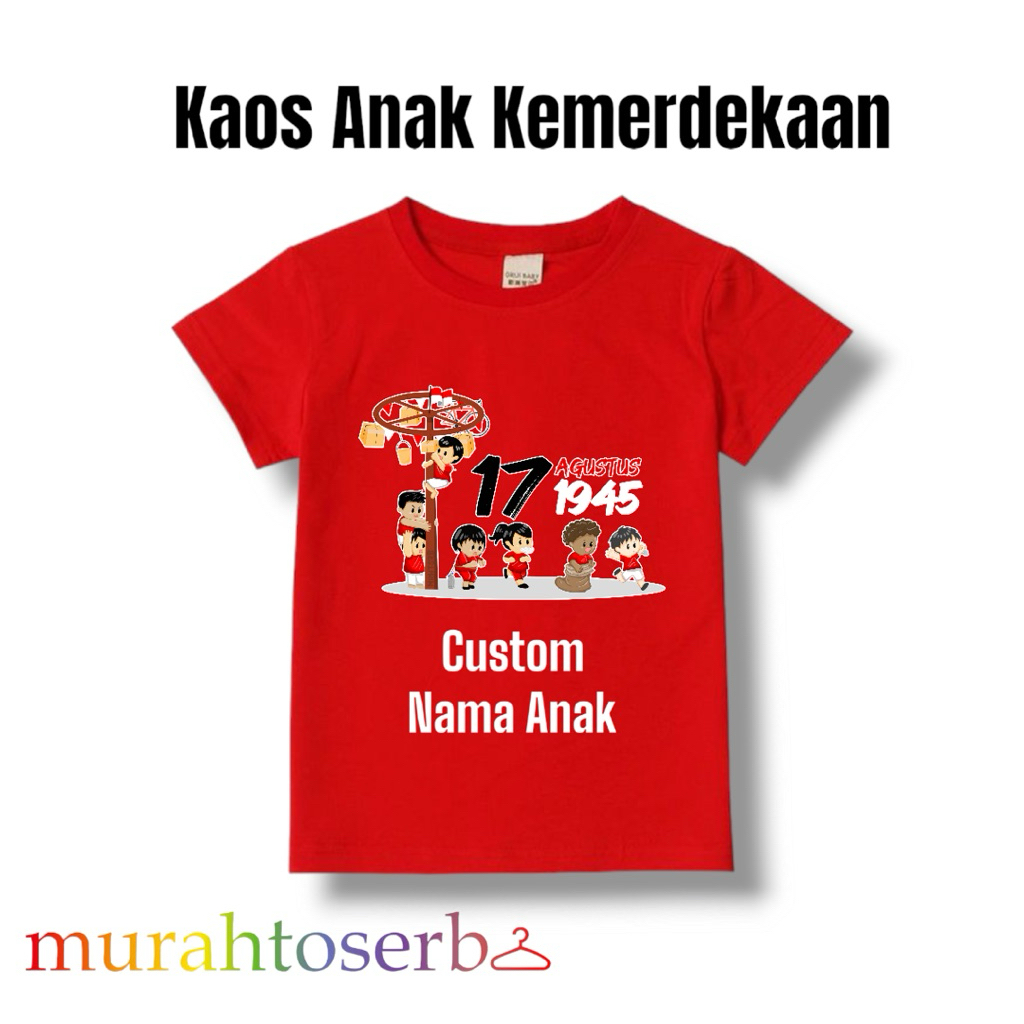 Free Nama Anak - Kaos Anak Hari Kemerdekaan 17 Agustus 1945 Lengan Pendek Untuk Usia 2-11 Tahun Warna Merah