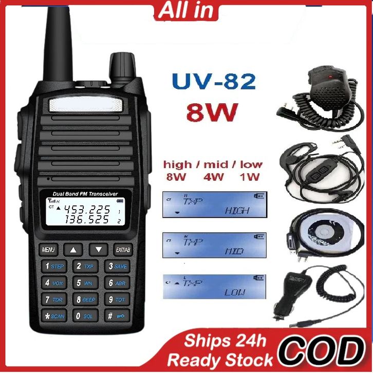 Radio HT Jarak Jauh 【100Ori】HT UV82 Walkie Talkie 8W 2800mAh Dual Band UHF/VHF Jarak Jauh 15KM UV82 Handy Talky