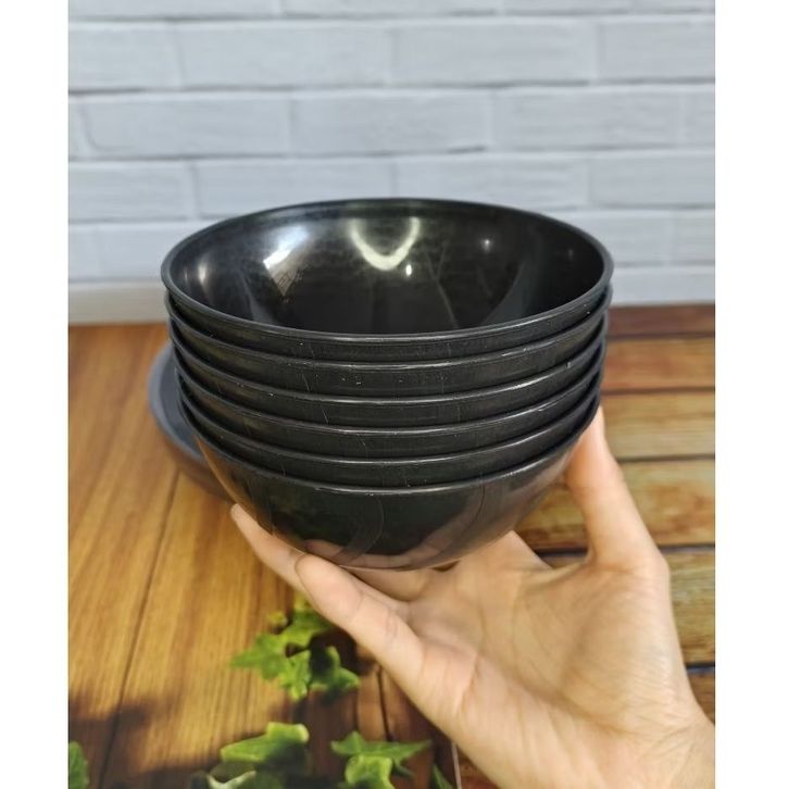 GROSIR PAKET BUNDLING ISI 12 PCS (1 LUSIN) 6 PCS PIRING PLASTIK JKS HITAM + 6 PCS MANGKOK TULIP HITAM unehd