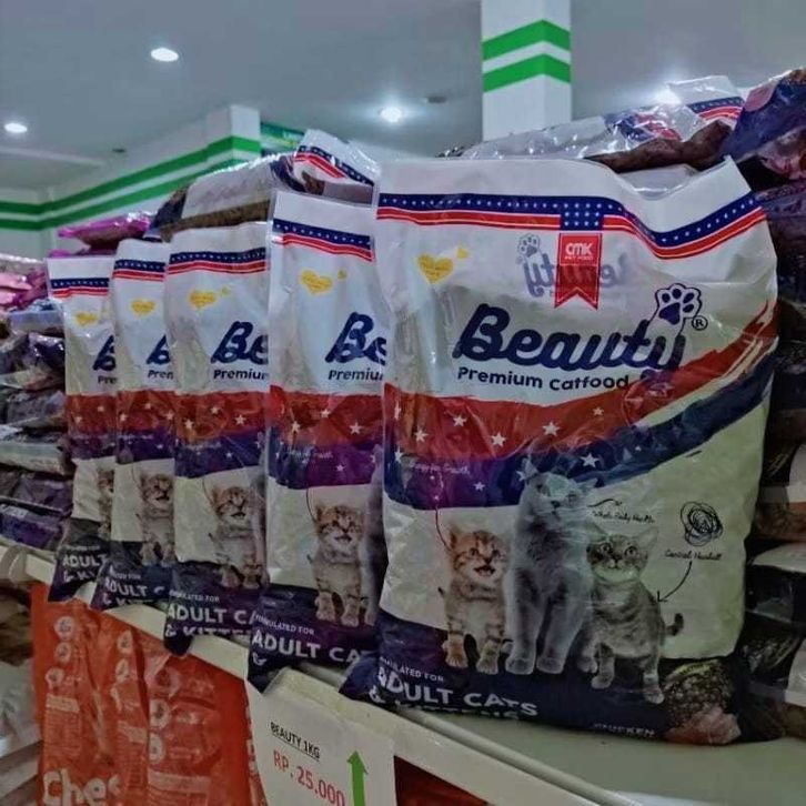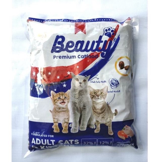 Makanan Kucing Penggemuk 5 PCS Makanan Kucing Beauty Chicken & Salmon All Stages KMasan 1KG Promo
