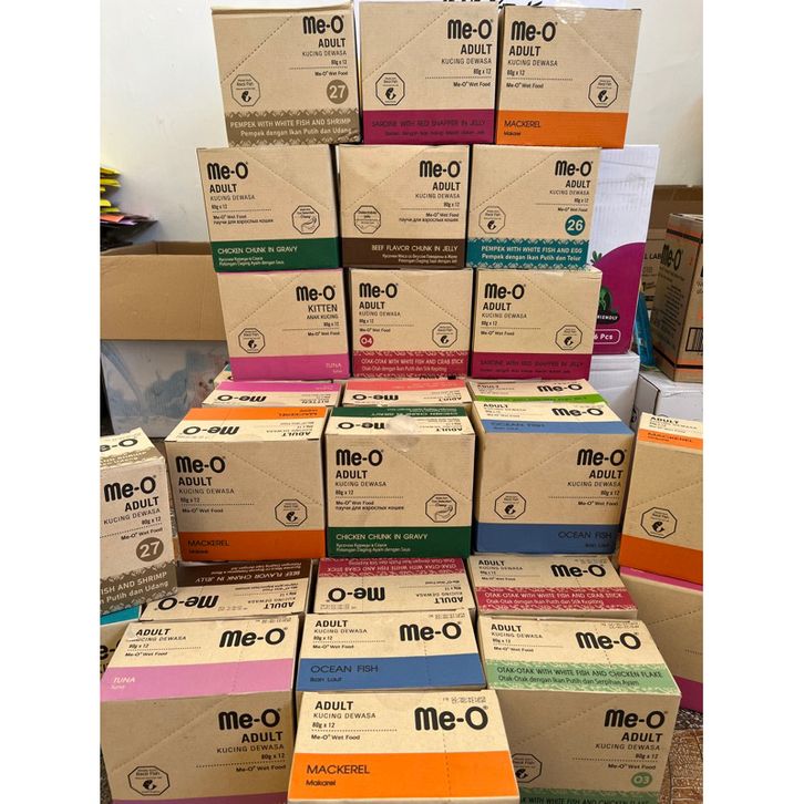 Makanan Kucing Penggemuk MEO Pouch 80gr 1 Dus Isi 12 Pcs Bisa Mix