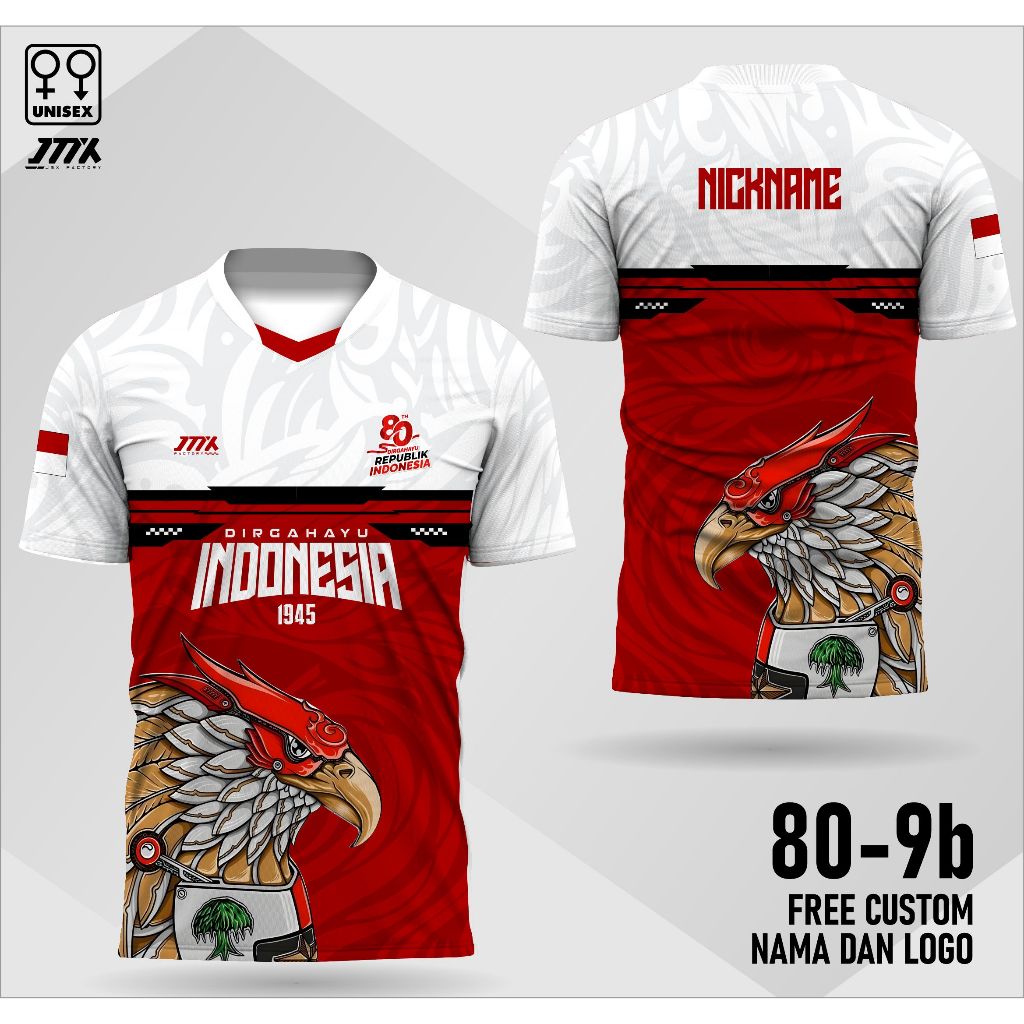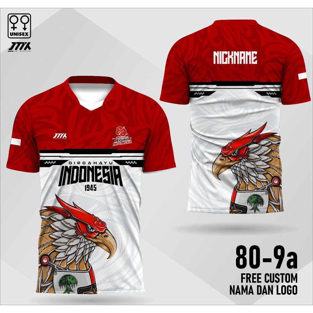 Kaos Jersey HUT RI 80 Tahun 2025 Kaos Baju 17 Agustus 2025 Kaos Kemerdekaan Free Nama FRTN