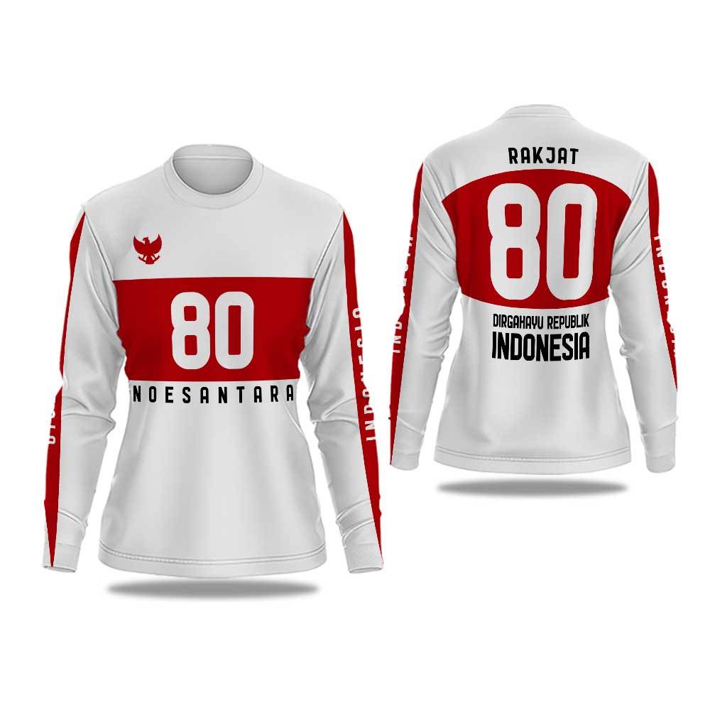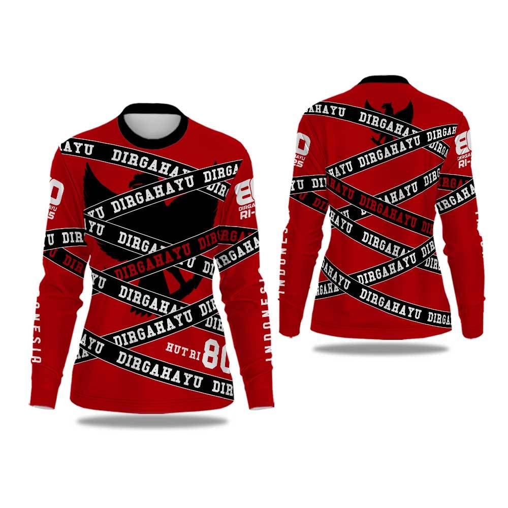 Kaos Jersey Agustusan 2025 Baju Cewe Lengan Panjang HUT RI Ke 80 Fullprinting