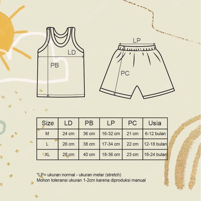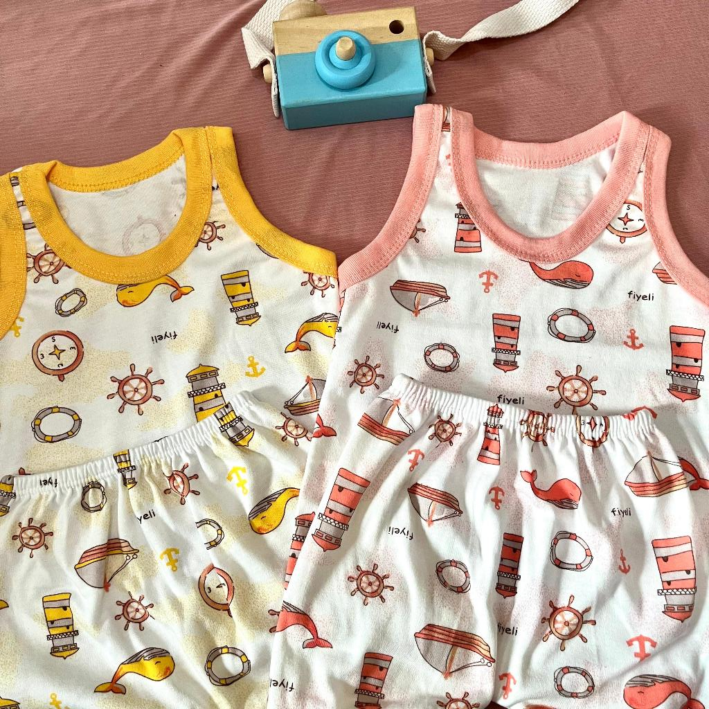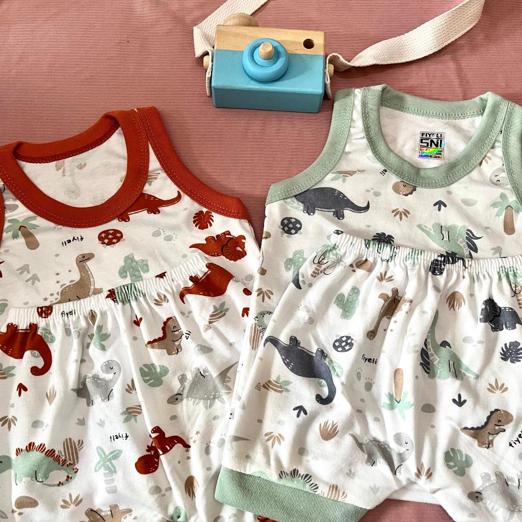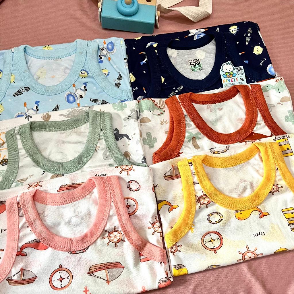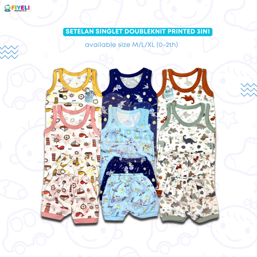 ISI 6SET Setelan Kutung Singlet Bayi Katun Printing Doubleknit 3in1