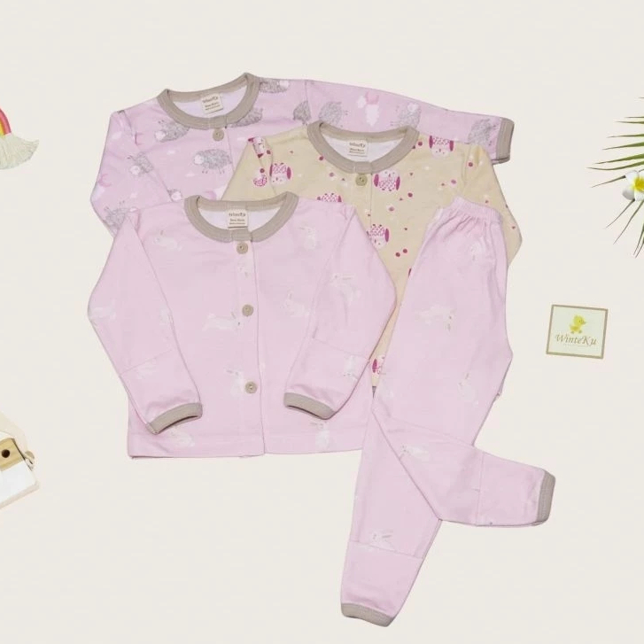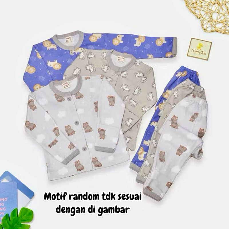 3 Pcs Setelan Bayi WinteKu Baju Pendek Celana Pendek Baju Panjang Celana Panjang Baby NB S M L 0-18M