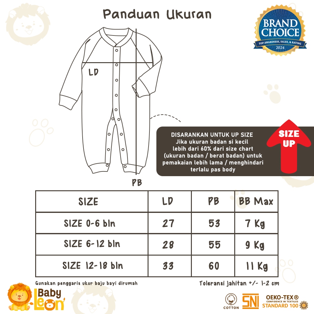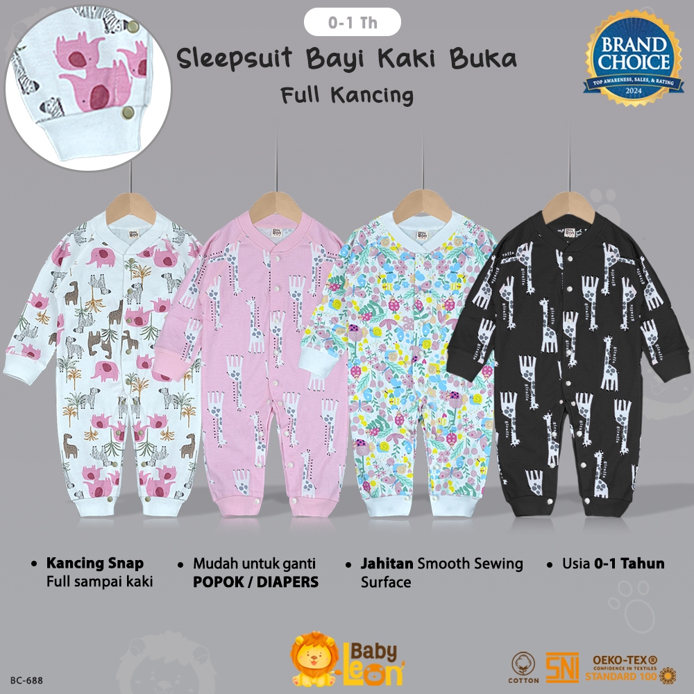BABYLEON Sleepsuit Bayi 0-1Th Jumsuit Kaki Buka Full Kancing Baju Bayi Perempuan Baju Tidur Bayi Panjang BC-688